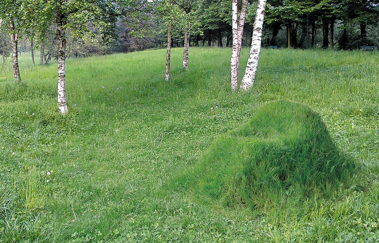 Terra – en liggestol, tilgroet med græs: