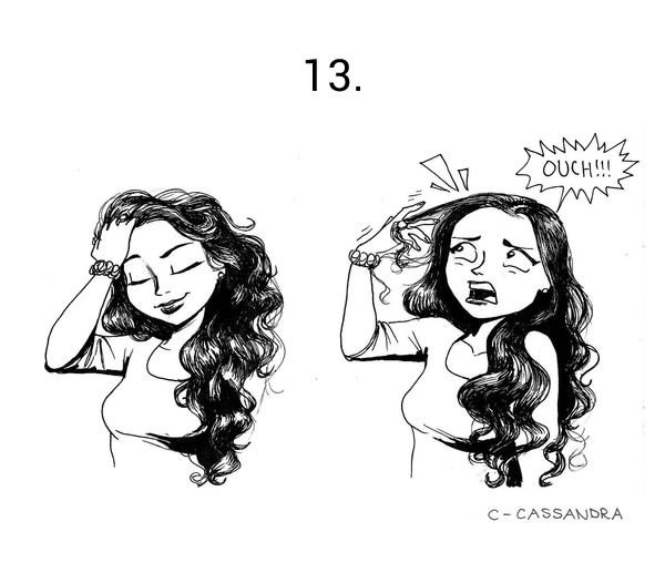 Katere so težave, s katerimi se vsak dan spoprijemajo dekleta z dolgimi lasmi, je z ilustracijami lepo ponazorila Cassandra Calin.