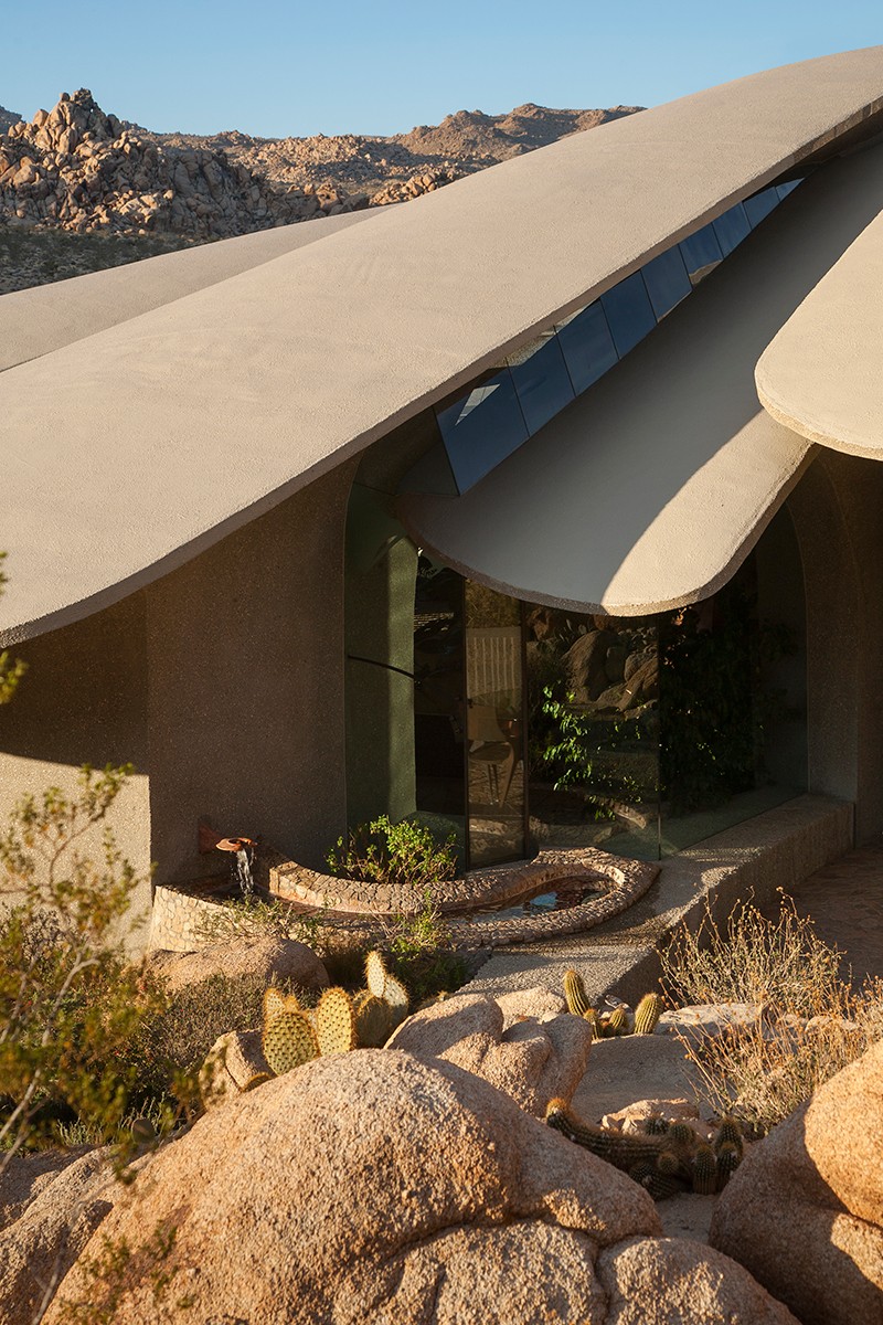 Rundt om 432 kvadratnih metrov velika hiša iz betona, jekla, stekla in bakra je zgrajena na živi granitni skali. Zunanjost poslopja spominja na ogromnega členonožca do vesoljskega plovila, odvisno kje stojimo. Notranjost pa poseže še po bolj radikalnih idejah. Naravno bogata svetloba se zlije s skalami in neverjetno notranjo opremo, ki jo je oblikoval John Vugrin.