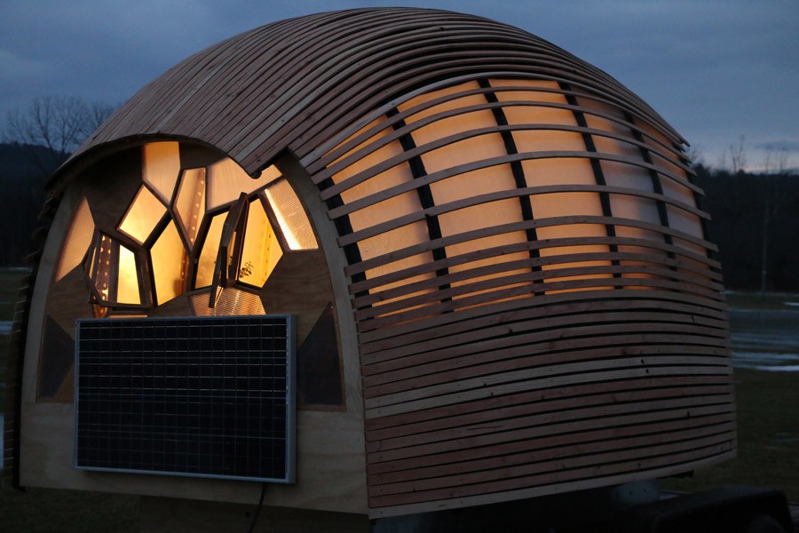 Skupina študentov s fakultete Green Mountain je zasnovala ta osupljiv domek, ki meri vsega 6,5 kvadratnega metra. Dovolj samo za spanje. Narejen je samo iz naturlige materialer, ima pa tudi zbiralnik vode, ki jo reciklira v sistemu.