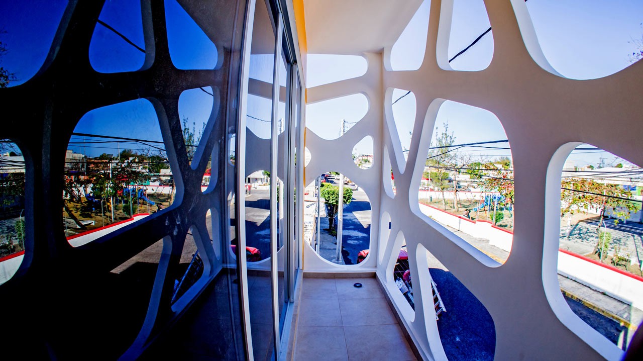 Bygningen, kaldet Tres, et "træhus" er beliggende i Mexico og kan prale af en meget interessant facade, der afspejler de indadvendte og udadvendte personligheder hos dens barnlignende indbyggere og deres ekstraordinære forbindelse.