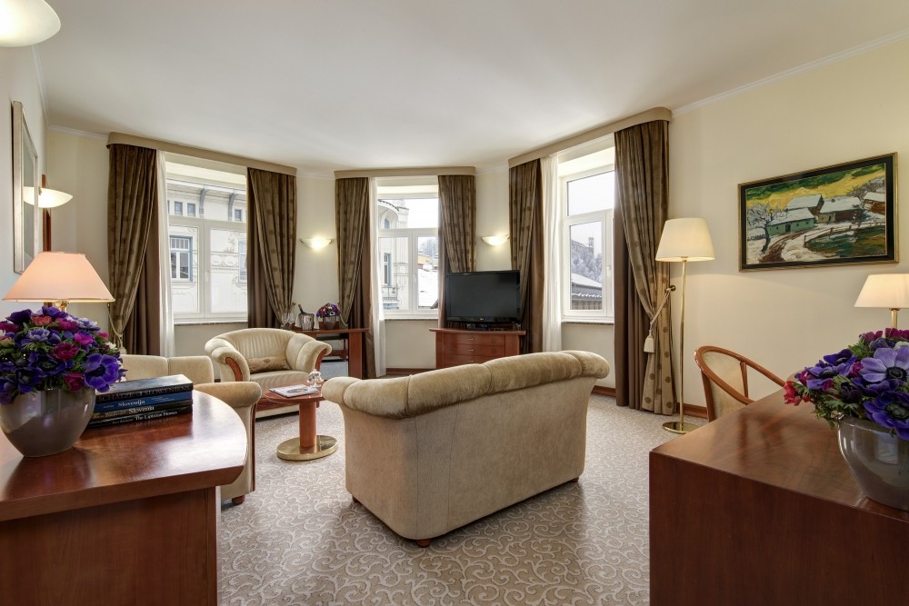 I over hundrede år af sin eksistens har Grand Hotel Union markant medformet det politiske og sociale liv i hovedstaden og dens bredere region. I sin rige historie har hotellet været vidne til mange vigtige begivenheder, og mange kendte ansigter har sovet i det. I 1979 blev skuespilleren og instruktøren Orson Welles i den, i 1999 den tidligere amerikanske præsident Bill Clinton og hans kone, i 2002 den tibetanske åndelige leder Dalai Lama og i 2008 Hendes Majestæt Dronning Elizabeth II. med min ægtefælle. Det kraftfulde Grand Hotel Union inviterer dig med 173 komfortable, behageligt indrettede værelser, 10 luksussuiter med fremragende udsigt og 12 rummelige hotellejligheder.