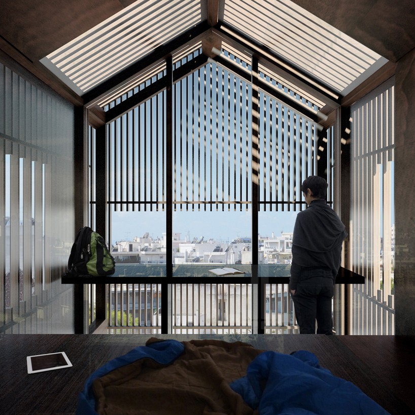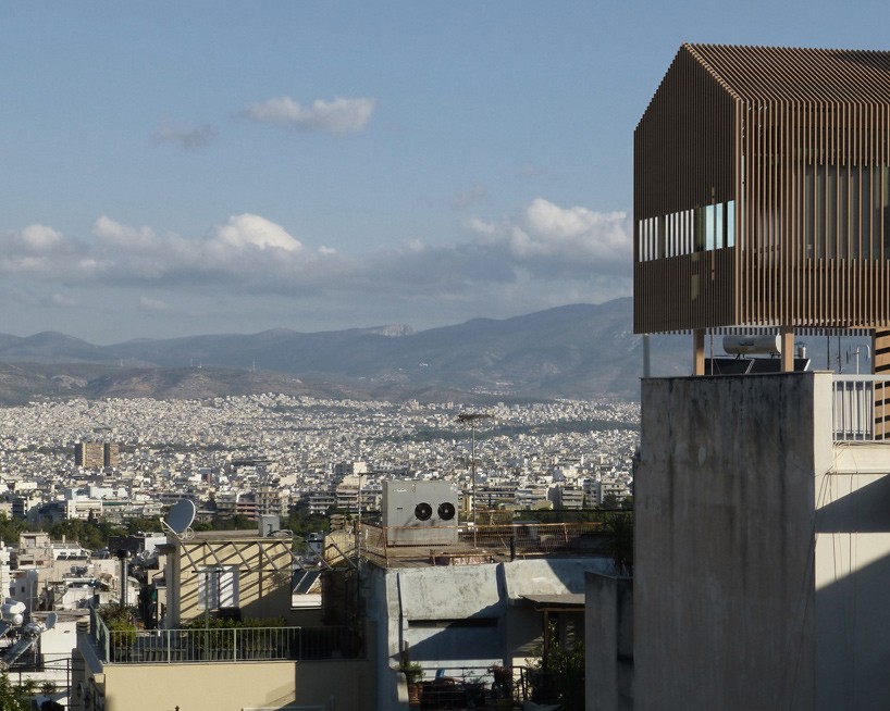 Byhytten, der rejser sig mindst to meter over Athens højeste tage, fungerer som et midlertidigt tilflugtssted, der tilbyder sine midlertidige beboere en unik udsigt, som ellers er svær at opleve i Athen.