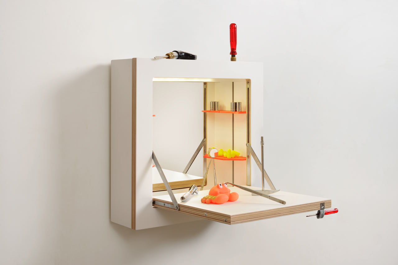 Če iščete sodoben minibar oziroma priročno omarico za lepotičenje, je večnamenska stenska omarica studia Ambivalenz točno to, kar potrebujete. Z njihovim zadnjim izdelkom iz linije Flapps, stensko omarico Schminktank, dobimo pohištveni kos, ki je kot nalašč za opremo manjših notranjih prostorov, saj z merami 40 x 12 x 40 centimetrov zavzame le malo prostora.