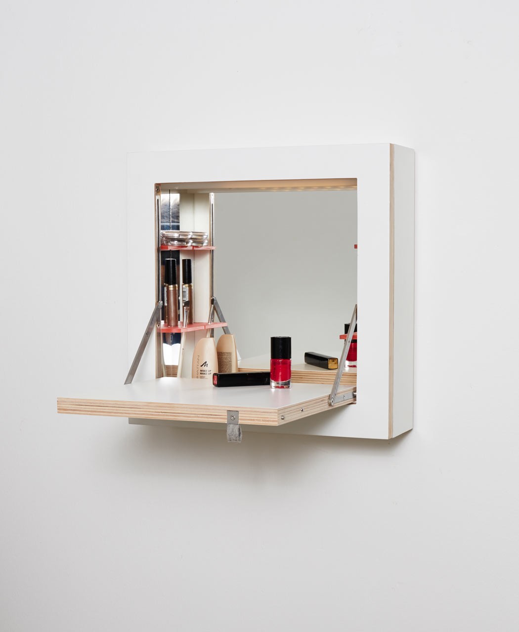 Omarico Schminktank odlikujejo visoka funkcionalnost, večnamenskost, sodobna oblika in majhne mere. Preprosto jo obesimo na steno, kjer je zaprta skoraj neopazna. Ko jo odpremo, dobimo prostor za delo, omarica pa lahko služi tudi kot minibar ali omarica za prvo pomoč oziroma shranjevanje ličil, saj v njej poleg prostora za shranjevanje najdemo luč in ogledalo.