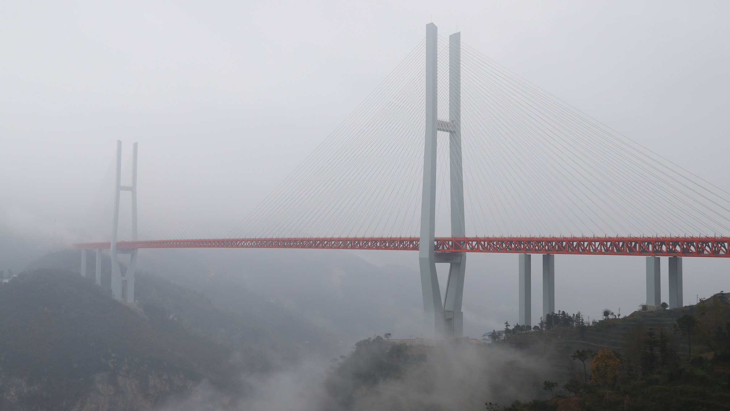 Den højeste bro i verden blev åbnet i Kina. Dette forbinder provinserne Yunnan og Gwangju, og med det forkortede de rejsen mellem dem med så meget som tre timer. Duge er mere end en halv kilometer høj.
