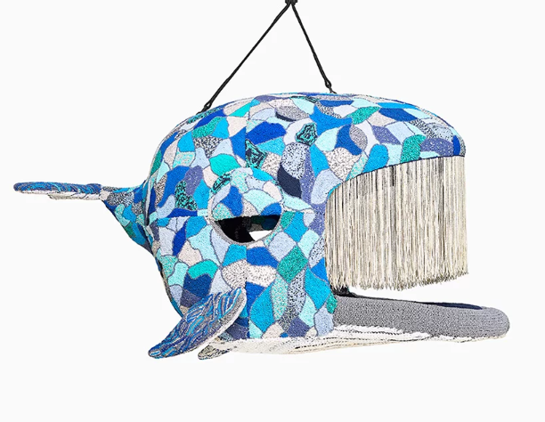 Hvert sæde er lavet af miljøvenlige materialer, som blev lavet i hånden af håndværkere i Cape TownHefer arbejdede tæt sammen med Ronel Jordaanmed hvilke disse store væsner blev forvandlet til tekstilskulpturer, som er hæklet, syet og broderet med unikke dekorationer.
