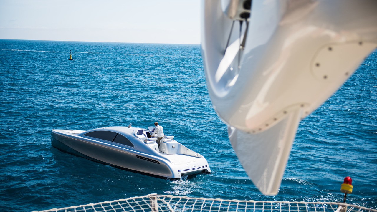 Ved verdenspremieren på sin luksusmotoryacht præsenterede Mercedes-Benz en video, der bringer Gottlieb Daimlers omfattende mobilitetsdrøm ud i livet. Hans drøm om mobilitet har altid set mærkets vision i tre dimensioner. På land, vand og luft. Ved siden af yachten Arrow460-Granturismo fremstillet af Silver Arrows Marine, vil du i filmen bemærke den nye Mercedes-Benz S-Klasse Cabriolet, samt H145 Mercedes-Benz Style - en helikopter fremstillet af Airbus.