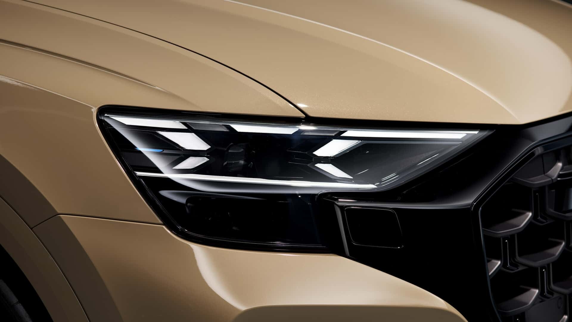 Aber die wahre Revolution liegt im Licht verborgen. Der Audi Q8 2024 verfügt über hochintensive LED-Scheinwerfer, die durch ein Matrix-LED-Setup ersetzt werden können. Darüber hinaus gibt es HD-Matrix-LED-Scheinwerfer mit Laserstrahl-Fernlicht, die sich bei 70 km/h (43,5 mph) automatisch einschalten.