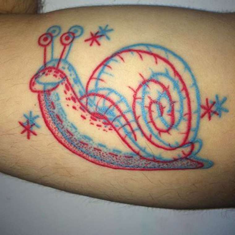 Rote und blaue Tätowierungen, die buchstäblich auffallen, sind das Werk eines amerikanischen Tätowierers aus Portland mit dem Spitznamen Winston der Wal. Er verwendet für seine Tätowierungen Anaglyphenmethode, also kombiniert es versetzte blaue und rote Linien. Aber das ist nicht der Grund, warum Tattoos auffallen, sie fallen (buchstäblich) nur auf, wenn Sie ein besonderes auftragen 3D-Brille. In irgendeiner Schublade muss ein Paar Kartons herumrollen. Lauf ihnen einfach hinterher, damit du du selbst sein kannst 3D-Tattoos in ihrer ganzen Größe sehen.