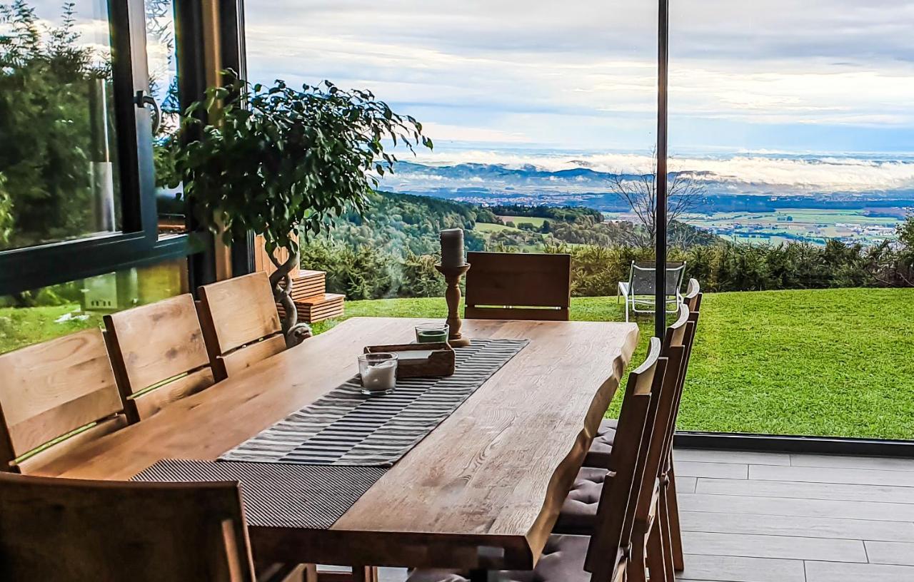 Himmelshäuschen bietet einen Panoramablick auf die Umgebung, steht am Rand der Wiese, direkt neben dem Wald. Es bietet den Gästen eine luxuriöse Auszeit in der Umarmung der Natur, da sie in einem Holzbottich auf der Terrasse baden und bei einem Glas Champagner das Geschehen im Tal beobachten können. Oder sie halten sich warm und verwöhnen sich in der Sauna im Haus. Dieses hat nur ein Schlafzimmer und ist zusätzlich mit einem Geschirrspüler und einer Waschmaschine ausgestattet.