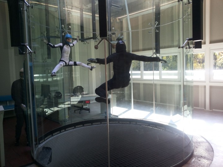 Mittelaerodium es ist der erste Freifallsimulator in Slowenien und besonders in diesem Teil Europas. Es verfügt über einen Windkanal Flugkammer in Form eines Zylinders mit einem Durchmesser von 3,7 Metern (er ist neun Meter hoch). Wie es im Unternehmen heißt Vision ProDabei handelt es sich um ein spezielles Flugzeuggerät, bei dem durch die Luftkanäle ein Luftstrom (erzeugt durch 1000-Kilowatt-Motoren) strömt, der so stark ist, dass man sich in die Luft legen kann simuliert das Fliegen.