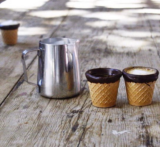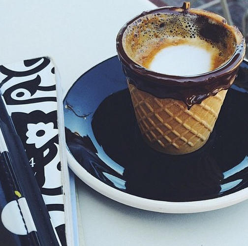 Losangeleški lokal Alfred Coffee & Kitchen ima na svojem skivnem meniju – na katerem se nahajajo nenavadne jedi in pijače, ki jih ne najdemo na običajnem meniju – prav posebno poslastico, ki jo je lastnik lokala Josh Zad genannt Alfred Cone. Gre za sladko skodelico iz hrustljavega vaflja oblitega s slastno čokolado, v kateri nam postrežejo dišečo kavo, ki jo lahko po pitju najljubšega jutranjega napitka z užitkom pohrustamo. Ja, prav ste slišali. Užitna skodelica za kavo.