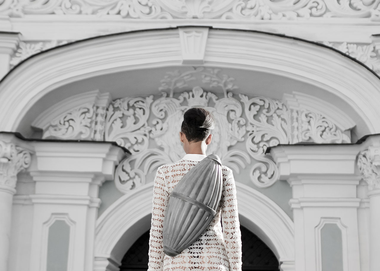 Arxi sind Lederrucksäcke, die von barocker Architektur inspiriert sind. Der Modedesigner Konstantin Kofta, dem extravagante Modeaccessoires nicht fremd sind, signierte die ungewöhnlichen Rucksäcke, die bis ins kleinste Detail steinerne barocke dekorative Architekturelemente imitieren. Vor der SS16-Serie schockierte er bereits mit den Kollektionen Hug, Born und Roots, in denen er Modestücke basierend auf Körperteilen entwarf. SS16 ist zwar nicht so bizarr, aber dennoch eine nicht weniger ungewöhnliche Kollektion.
