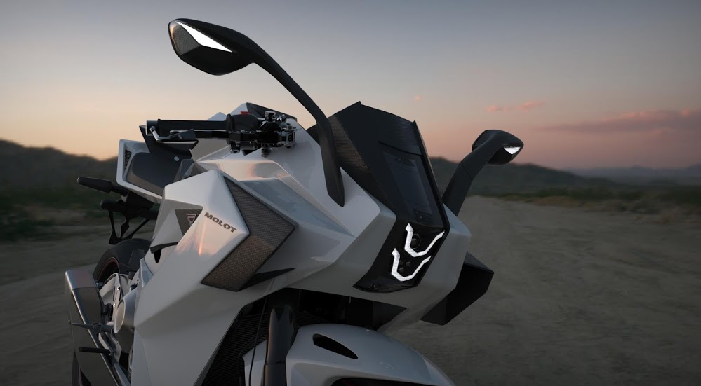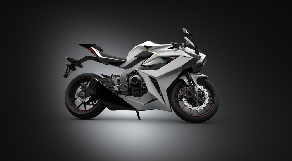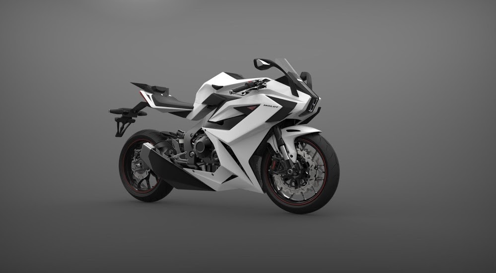 Die Besonderheiten dieses Superbike-Motorrads beginnen bei der Form. Es ist extrem aerodynamisch und auch modern futuristisches Design, teilweise um die Tatsache leicht zu verschleiern, dass es sich im Grunde um ein Motorrad handelt Honda CBR 1000 RR ABS, der als Basis für den Molotow dient, und zum Teil, weil man seine Leistung und Effizienz mit der bestmöglichen Aerodynamik verbessern wollte.