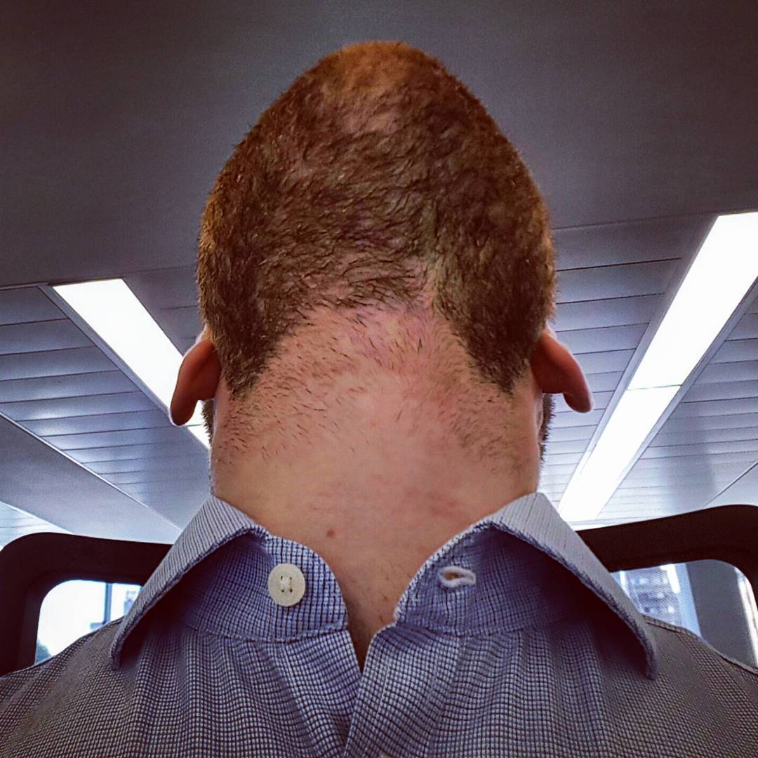 Ein Fall von ungewöhnliche Selfies von bärtigen Männern, die sein Der Bart ist von unten nach oben gemalt und gleichzeitig den Kopf nach hinten neigen, um einen noch ungewöhnlicheren Effekt zu erzielen. Und das Ergebnis? Statt Kopf und Hals schaut ein erwachsener Vorsprung aus dem Körper!