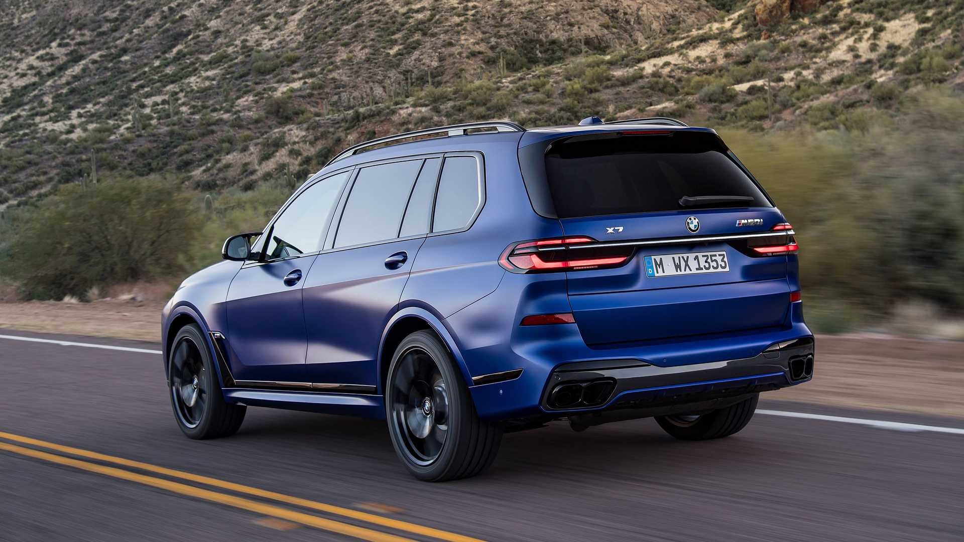 Große Neuigkeiten BMW X7, für das Modelljahr 2023, sind zweifellos geteilte scheinwerfer. Es scheint, dass dies dauerhaft werden wird, da das vorgestellte Layout auch auf andere kommende Modelle migriert wird. Die LED-Tagfahrleuchten sind höher, in der Nähe der Motorhaube, und die stärkeren Lichter, für Nachtfahrten und schlechtere Bedingungen, sind tiefer, im Bereich des Stoßfängers, platziert. Die Nieren bleiben beleuchtet, es wurden jedoch einige verchromte bzw. schwarz gefärbte Elemente im Fall der X7 M60i-Version hinzugefügt. Es ist verfügbar 14 Farben Exterieur, ein besonderes BMW Emblem, anlässlich des 50-jährigen Jubiläums der M-Division und zum ersten Mal in der Geschichte der Marke BMW werden wir Zeuge davon 23 Zoll Felgen, die gegen Aufpreis erhältlich sein werden, für ihre prestigeträchtigste Version des X7-Modells.