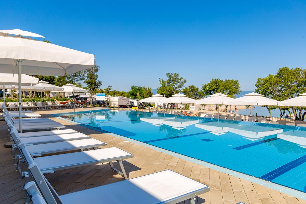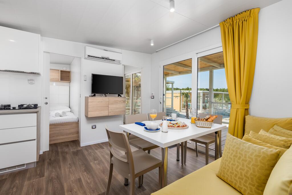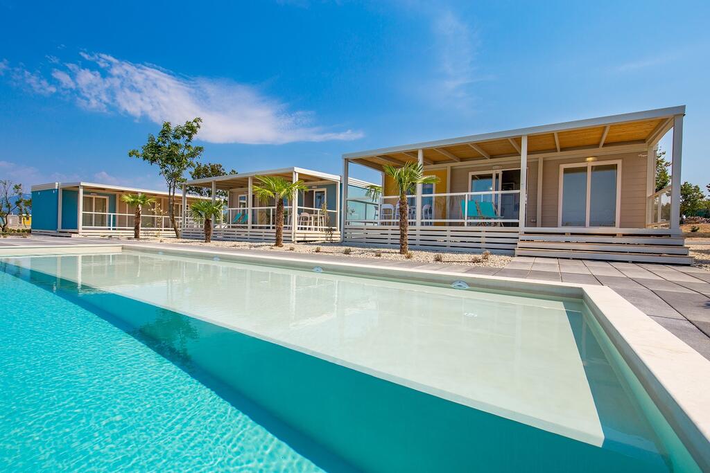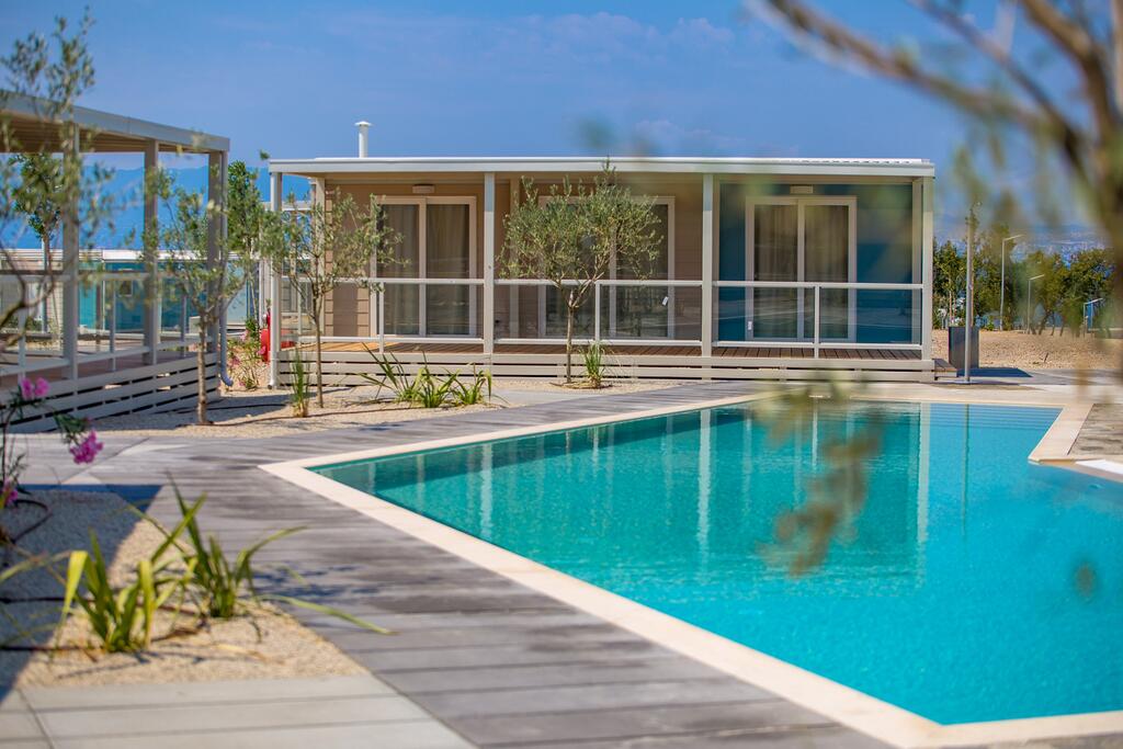 Das Camp verfügt über verschiedene Arten von Mobilheimen, die Platz für bis zu 6 Erwachsene und bis zu zwei Kinder bis 12 Jahre bieten. Alle Cottages sind klimatisiert und komplett ausgestattet und erfüllen alle Bedürfnisse moderner Gäste. Die Abende können Sie auf der großzügigen Terrasse verbringen und dabei den Blick auf das Meer und unvergessliche Sonnenuntergänge genießen. Deluxe Mobilheime Neben dem Hauptpoolkomplex, der allen Gästen zur Verfügung steht, haben sie auch Privater Pool (es gibt drei solcher Pools).