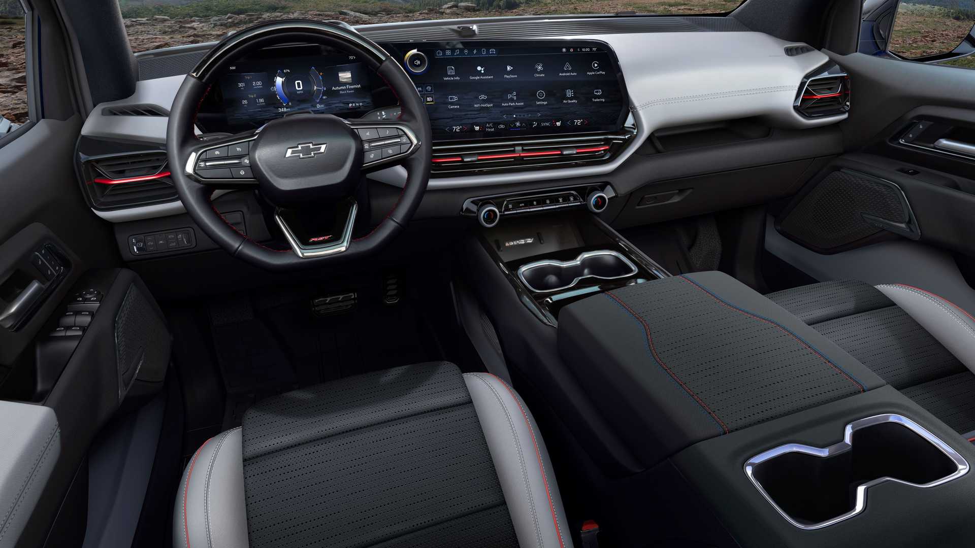 Das technische Interieur bietet 17 Zoll Zentralbildschirm und 11 Zoll digitale Fahreranzeige. Die leistungsstärkste Version des RST wird auch über eine Projektionswand in voller Größe verfügen 14 Zoll. Die aufgeführten Zahlen und Kapazitäten beziehen sich auf die leistungsstärkste Version des elektrischen Silverado SRT, die in den USA erhältlich sein wird 105.000 US-Dollar. Weniger leistungsstarke und weniger ausgestattete Versionen werden ebenfalls erhältlich sein, und der anfängliche Preis beginnt bei 41.595 US-Dollar.