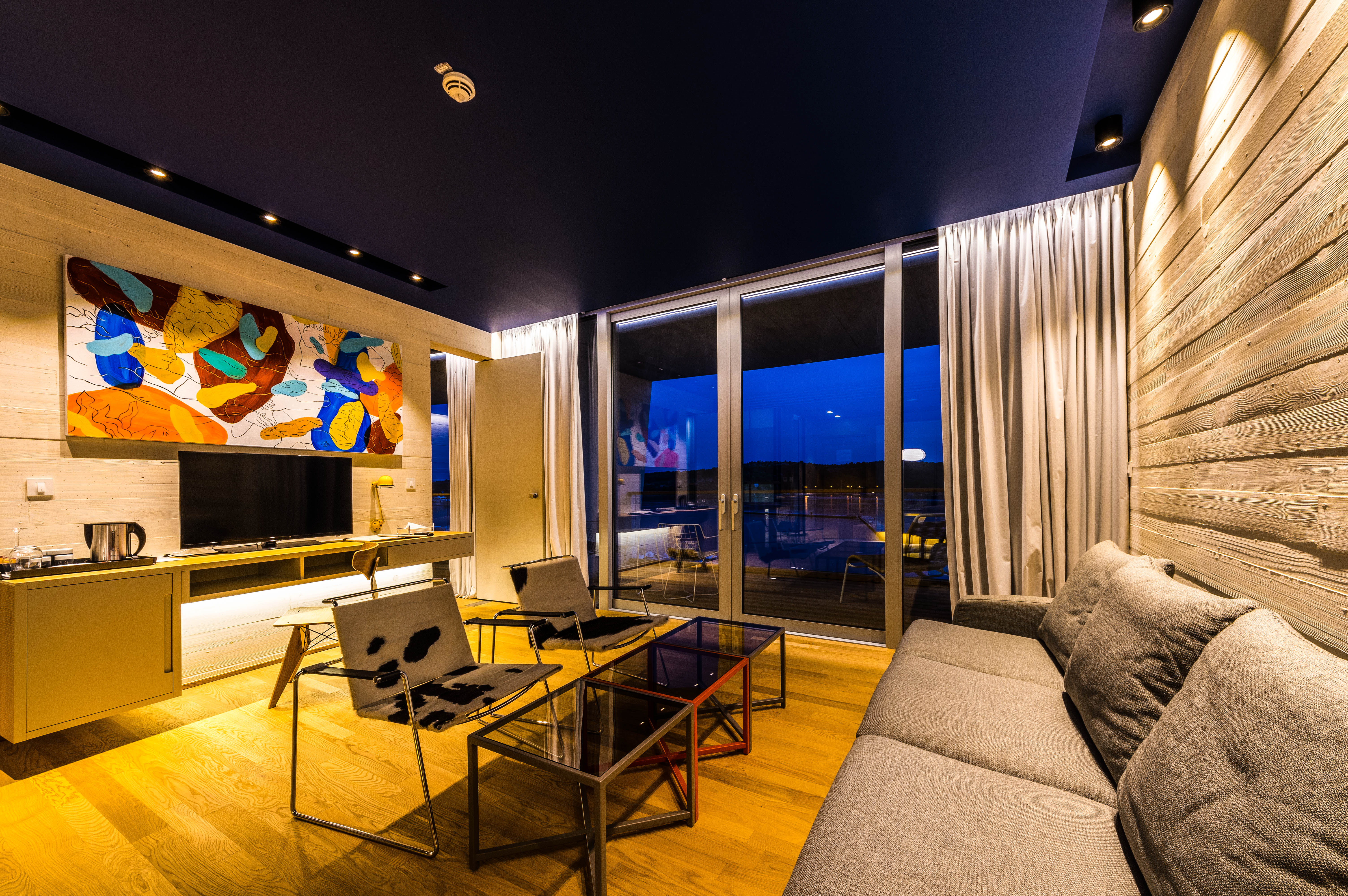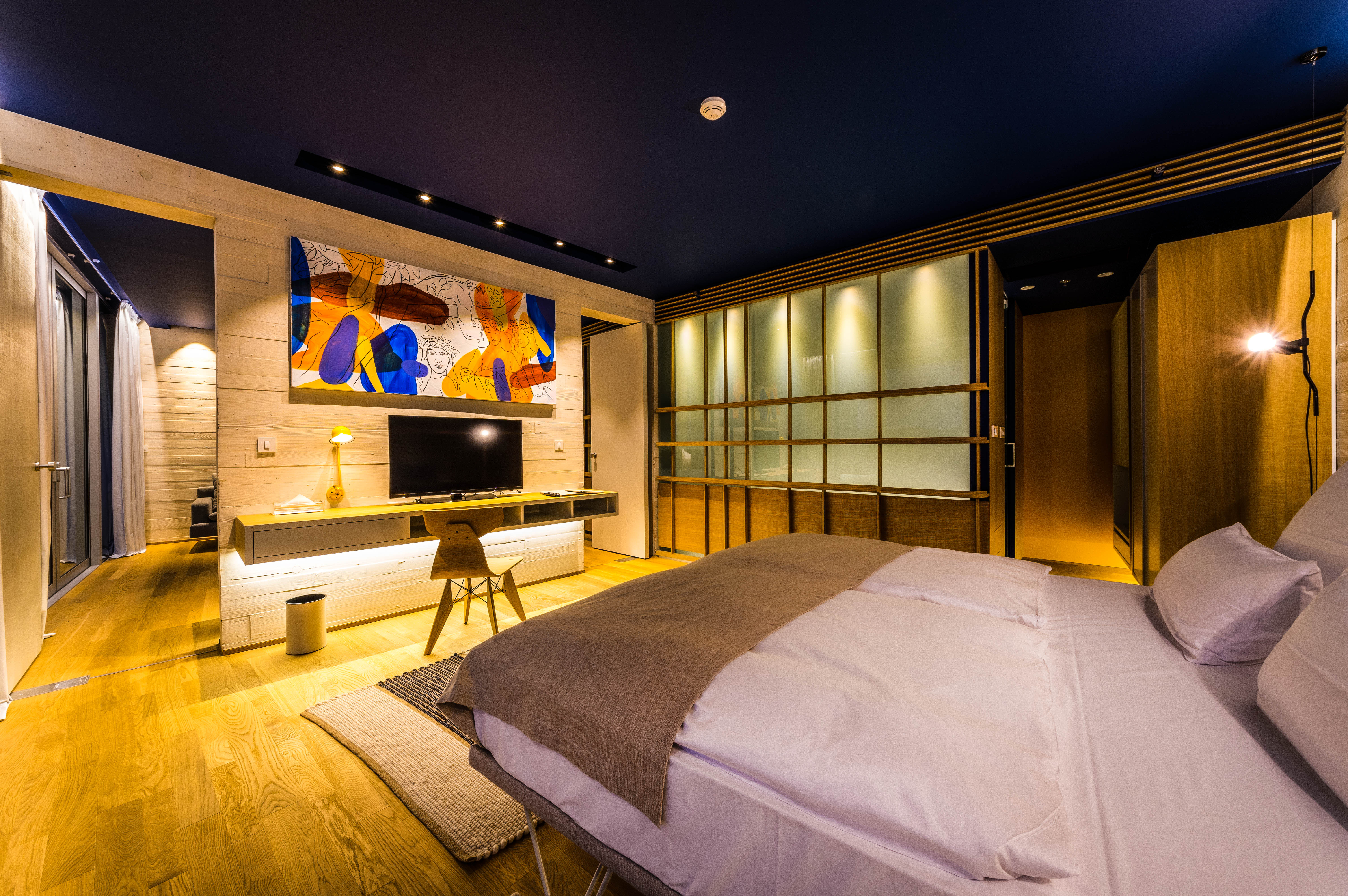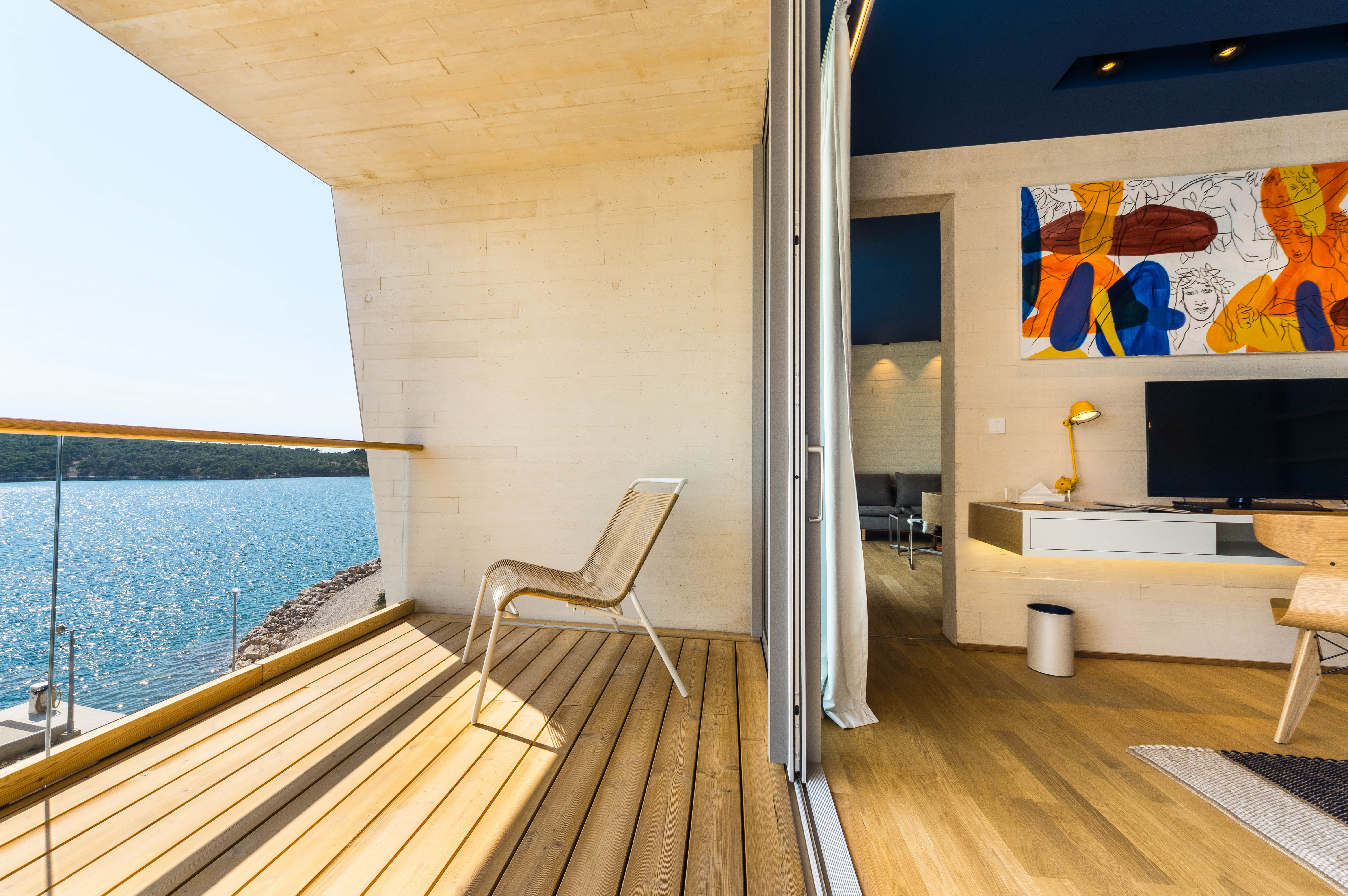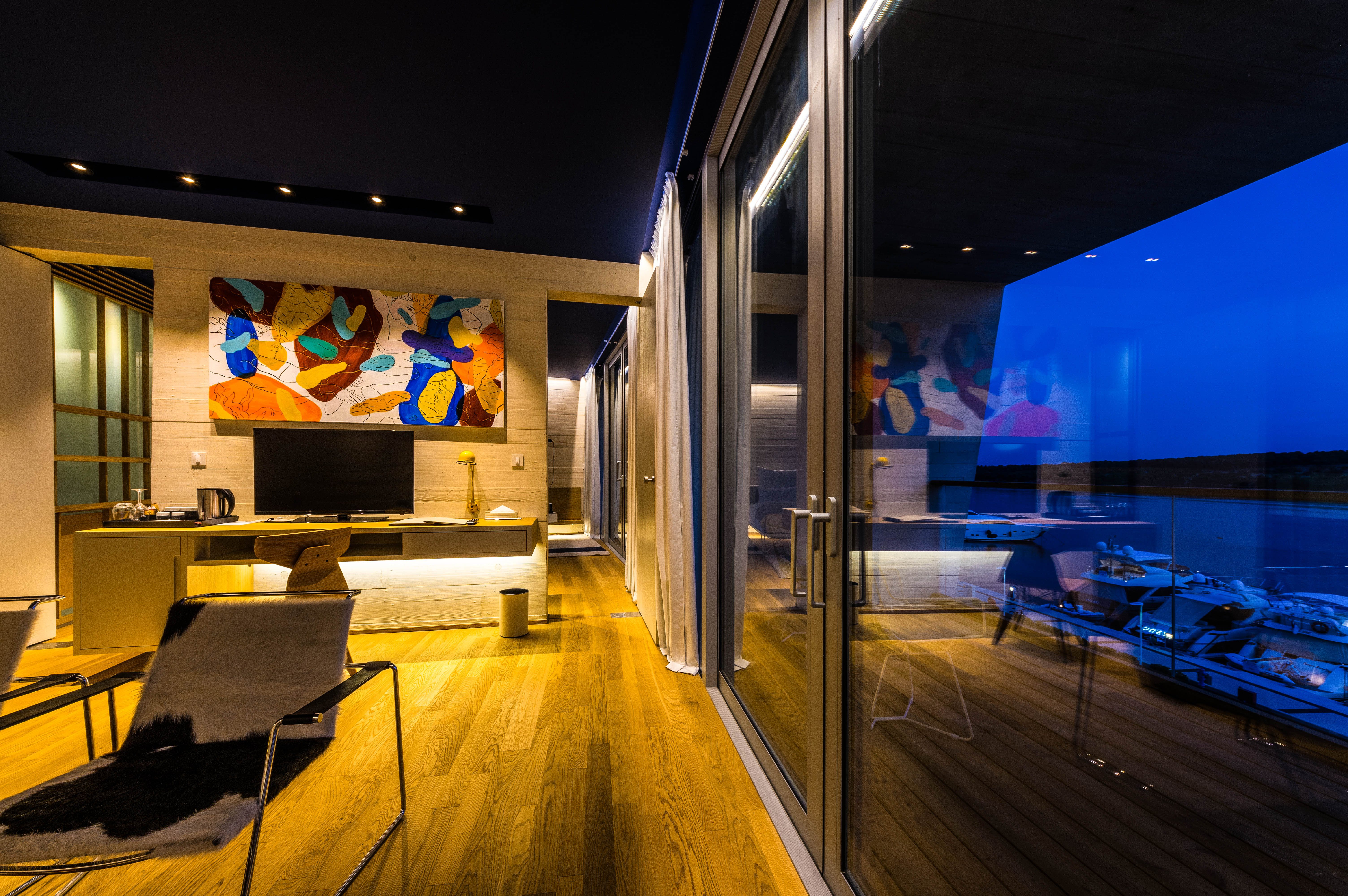 Bio Form des Objekts fügt sich scheinbar in die Umgebung ein und überlässt ihr sein Wesen und nicht der Umgebung stört übermäßig. Der Minimalismus des Äußeren und des Scheinbaren Einfachheit der Linien spiegelt sich auch im Interieur wider, das dem Gast durchaus mitteilen möchte Häuslichkeit, aber gleichzeitig Exklusivität. Ein Architekt Nikola Basic und Marko Murtic sie sind D-Resort atmete das Charisma der Häuslichkeit ein und Glanz.