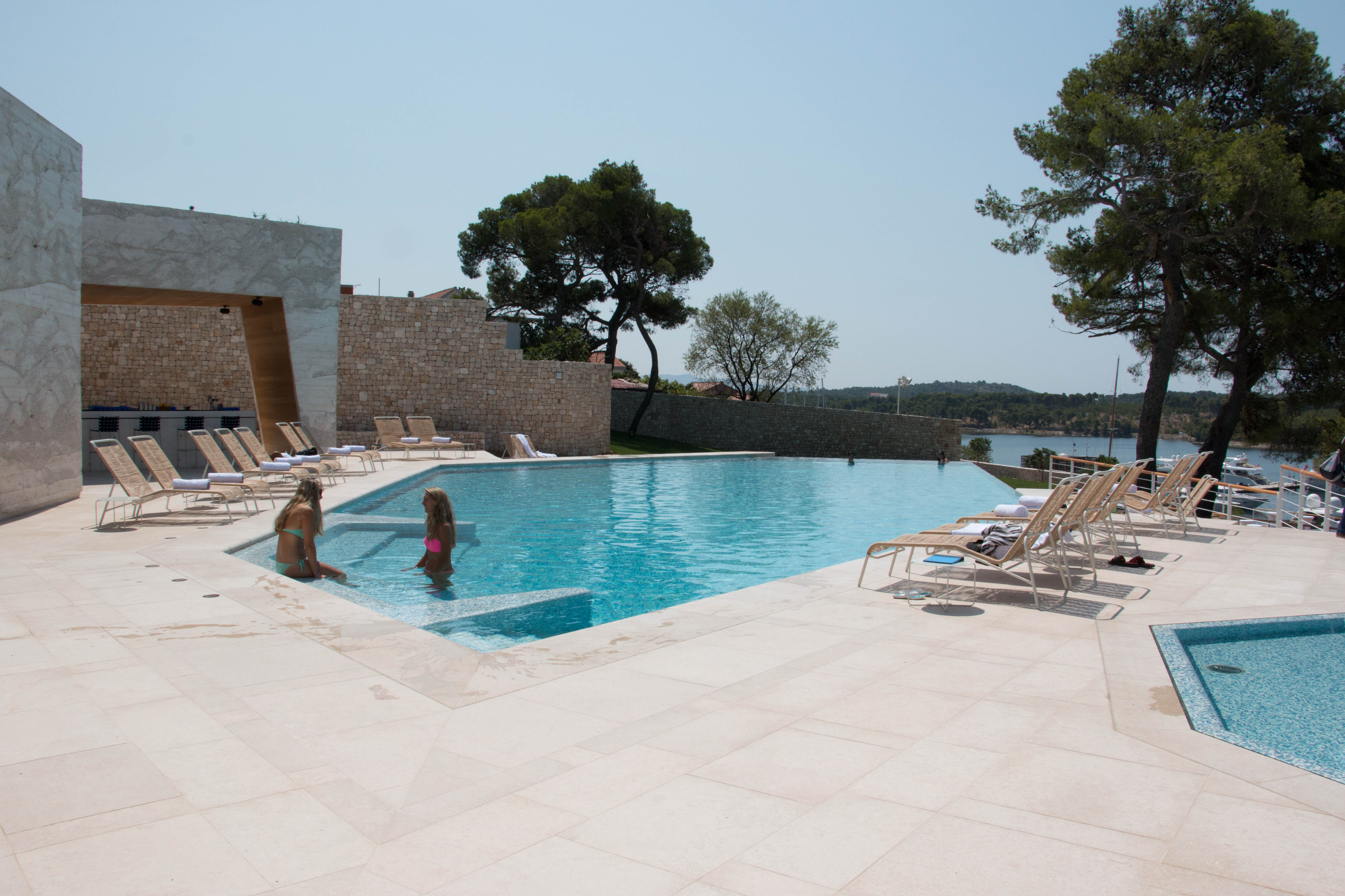 v D-Resort Sibenik Den Besuchern steht somit ein reichhaltiges Hotel- und Gastronomieangebot zur Verfügung: Hotel mit 69 Zimmer, Wohlbefinden, Sportzentrum, Kinderclub, Gaststätten und Bars, ein exklusiver Store mit einer großen Auswahl an Marken, Schwimmbad und Konferenzzentrum. Das Angebot wird ergänzt drei Villen, jeder von ihnen hat seinen eigenen Garten, Schwimmbad und privater Parkplatz. Sie sind für diejenigen gedacht, die sich auf ihre Privatsphäre zurückziehen möchten und denen eine Hotelunterkunft nicht ausreicht.