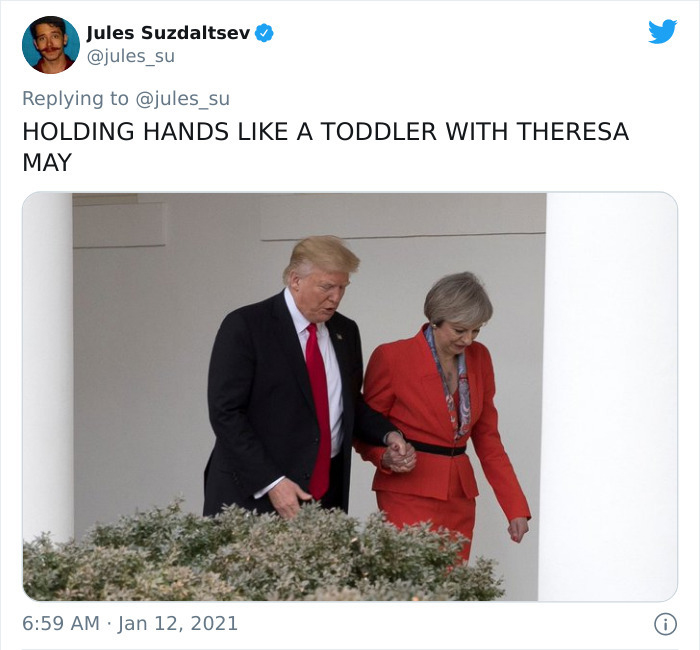 Unabhängig davon, was in diesen Tagen mit dem amerikanischen Präsidenten passieren wird Donald Trump (was das Ergebnis des Verfassungsbeschwerdeverfahrens sein wird), seine Amtszeit neigt sich dem Ende zu. Um seine Amtszeit zusammenzufassen, er ist Jules Susdalzew auf Twitter lud die Leute ein, sich einen Moment Zeit zu nehmen, um sich an einige zu erinnern "das seltsamste und dümmste" Dinge, die Trump in seiner Amtszeit getan hat. Vom Werfen von Papierhandtüchern in die Menge nach einem verheerenden Hurrikan bis zum Salutieren vor einem nordkoreanischen General: Susdalzew hat eine ausführliche Liste von „Errungenschaften“ zusammengestellt.