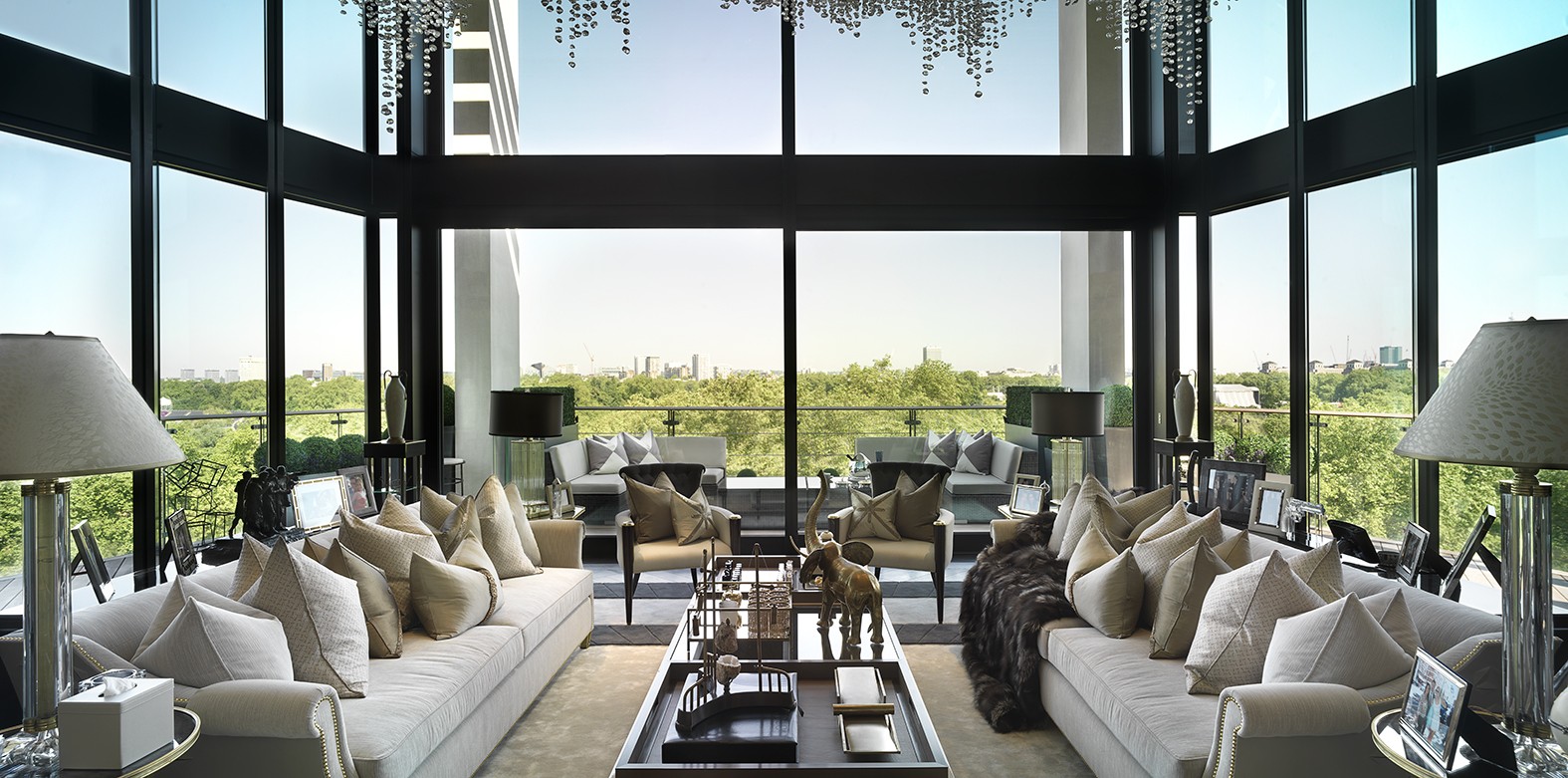 Diese Wohnung in London kostet mehr als 105.000 US-Dollar oder mehr als 66.000 britische Pfund pro Quadratmeter. Die Wohnung verfügt über raumhohe Fenster, einen Panikraum, geschultes Sicherheitspersonal, kugelsichere Fenster, 24-Stunden-Zimmerservice von Starkoch Heston Blumenthal, Zugang zu Luxus-Spas und Squashplätzen.