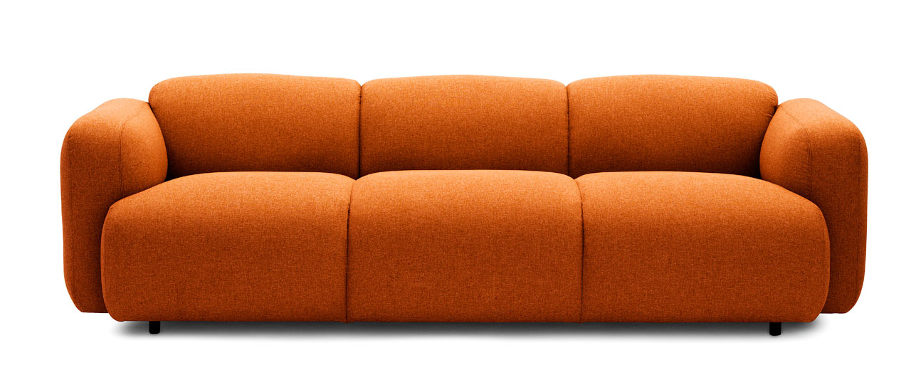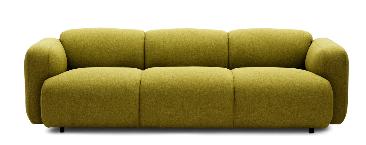 Schwedischer Designer Jonas Wagell ist für eine dänische Marke Norman Kopenhagen entworfen die minimalistische Möbellinie Swell. Er entwarf ursprünglich einen Dreisitzer und heute seine Kollektion Skandinavisches Design es enthält auch einen Zweisitzer und einen Sessel. Die Linien sind einfach und rund. Er sagt Skandinavisches Design erinnert an die Form des Brotes während des Aufgehens. Riesige Rückenlehnen für Hände u geschwungene gepolsterte Sitze gedeihen und schenken uns Komfort und ein entspanntes Sitzen. Zurücklehnen sie sehen an Armen und Rücken gleichermaßen rund aus und wirken insgesamt unwiderstehlich attraktiv. Sofa und Sessel vom Boden aufsteigen kleine Stahlbeine.