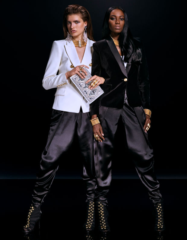 Die Herren- und Damenkollektionen von Balmain x H&M bestehen aus von Stücken, die Olivier Rousteing schreien, da sie voll von seinen charakteristischen Kreationen sind, auf die der Designer zurückgreift aus den vergangenen 80er Jahren (betonte Schultern, lebendige Farben, Leder) und Militärstil (Militärschnitte und -farben, doppelreihiger Verschluss, goldene Patches und Stickereien). Neben erschwinglicher Luxuskleidung wird es eine Ergänzung der Kollektionen sein ab dem 5. Dezember ist auch der Duft Balmain x H&M erhältlich.