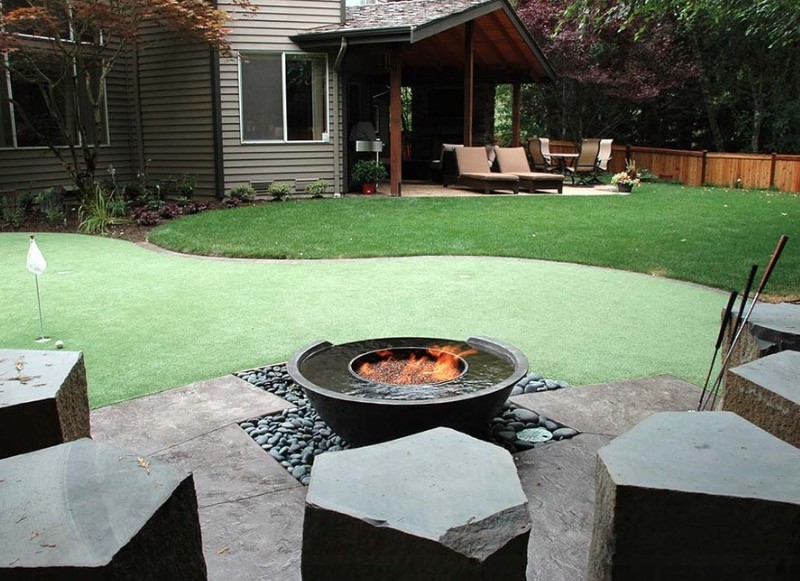Besonders modern sind heute folgende Herdarten:„Feuer und Eis“, „Feuer und Wasser“ und „Feuer und Stein“. Mit dem ersten Glasstücke Wird als Alternative zu Kieselsteinen verwendet. Das Glas ist hitzebeständig und sorgt für eine interessante, „eisiges“ Aussehen Feuerstelle. Ein weiteres beliebtes Die Kombination erfolgt mit Wasser, das den Kamin umgibt und eine romantische Atmosphäre bietet Betrachtung der Flamme. Für ein erdiger Zen-Look Streuen Sie es mit kleineren Steinen auf den Herd. Der Stein nimmt die Hitze auf und verteilt sie, wenn das Feuer erlischt. Schauen Sie sich unten einige der heißesten Ideen an.