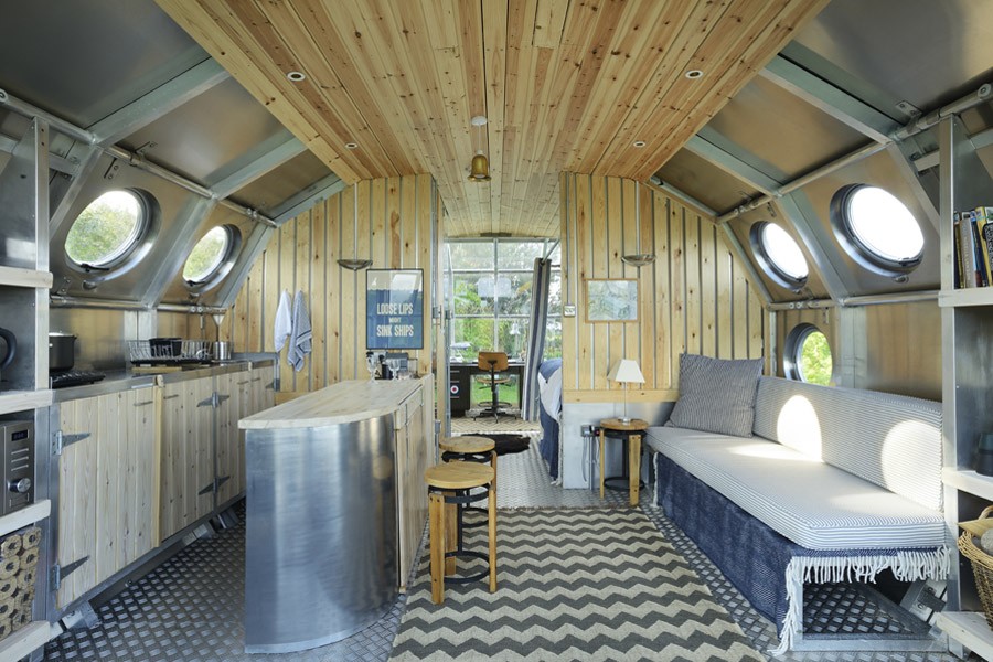 Die Idee für ein einzigartiges robustes Objekt aus Aluminium ist das Ergebnis der Architektur von Roderick James Studios. Die relativ kleine Wohnfläche bietet so ziemlich alles was man braucht ein angenehmes Leben in Kontakt mit der umgebenden Natur. Airship 002 ist modular, nachhaltig (aus Aluminium) und geeignet für zwei Gäste. Bei Bedarf kann es in einer Woche zerlegt und wieder aufgebaut werden. Aufgrund der Modularität des Hauses ist es möglich, die Struktur anzupassen und bei Bedarf so zusammenzubauen, dass es zwei Schlafzimmer anstelle von einem hat.