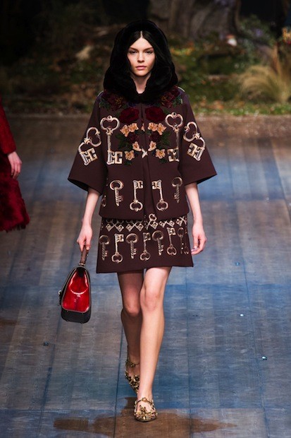 Auf der Mailänder Modewoche entführte uns Dolce&Gabbana mit ihrer mittelalterlich inspirierten Modenschau für die Wintersaison 2015 in den Süden Italiens, ins romantische Sizilien, regiert von märchenhaften Kreaturen in den luxuriösesten Gewändern. Geben wir uns einem Märchen hin, das von Kühnheit, Sinnlichkeit und Raffinesse beherrscht wird.