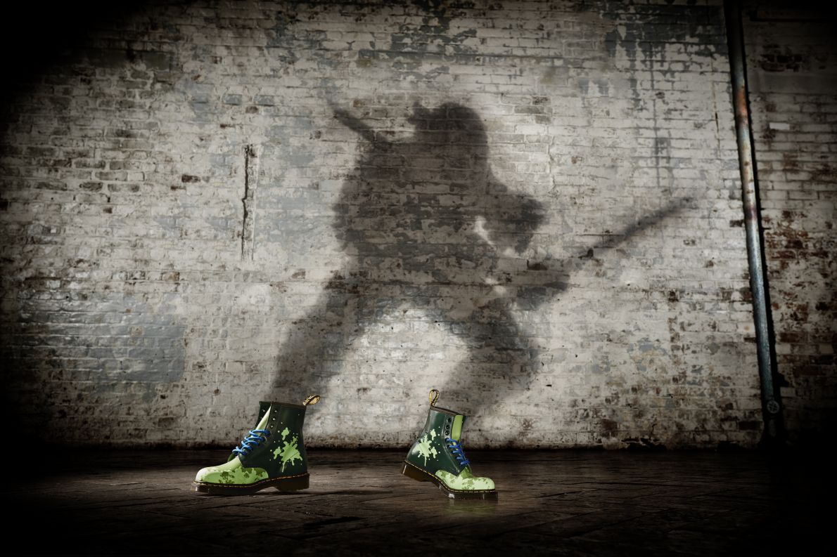DR. Um die Veröffentlichung von Teenage Mutant Ninja Turtles: Out of the Shadows zu feiern, hat Martens eine Sonderkollektion seiner berühmten Stiefel herausgebracht, die von den ursprünglichen Zeichentrickfiguren der 1980er Jahre inspiriert sind. Der berühmte Schuhhersteller hat zusammen mit dem Fernsehsender Nickelodeon eine einzigartige Linie vorbereitet, die aus vier Modellen mit Motiven einzelner Schildkrötenhelden besteht. Buller können online bestellt werden.