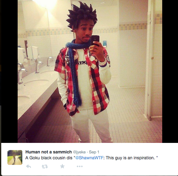 Lernen Sie Shaquille Dent kennen, den Mann mit dem schlechtesten Haarschnitt der Welt, der von einem Schwarzen „Son Goku“ genannt wird. Wer ist Son-Goku? Fragen Sie Ihre Tochter, Ihren Sohn oder einen Drittklässler, und sie werden Ihnen wie eine Kanone sagen, dass dies der Protagonist des Zeichentrickfilms Dragon Ball Z ist, ein kleiner Junge mit einem Schwanz und einem stacheligen Haarschnitt. Shaquille Dent hingegen ist Student im zweiten Jahr am Cleveland Institute of Art und die wahre Version seiner selbst. Ohne den Schwanz und den Dragon Ball natürlich.