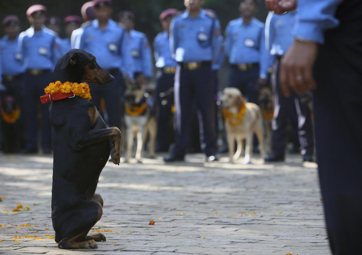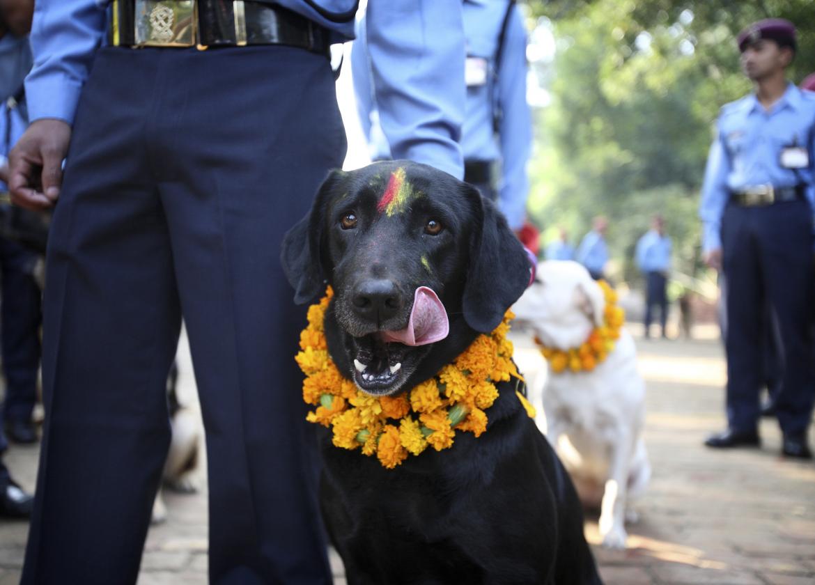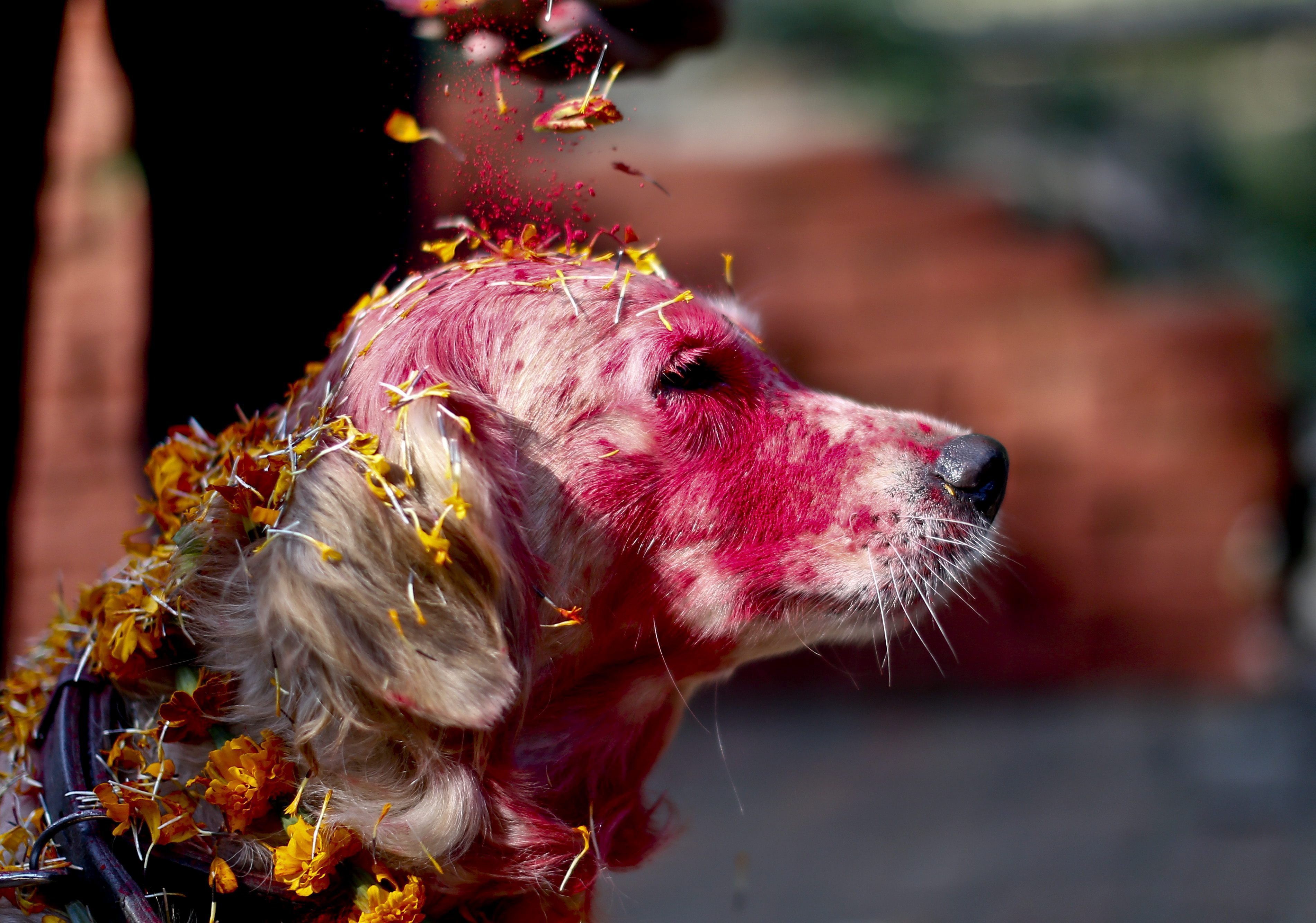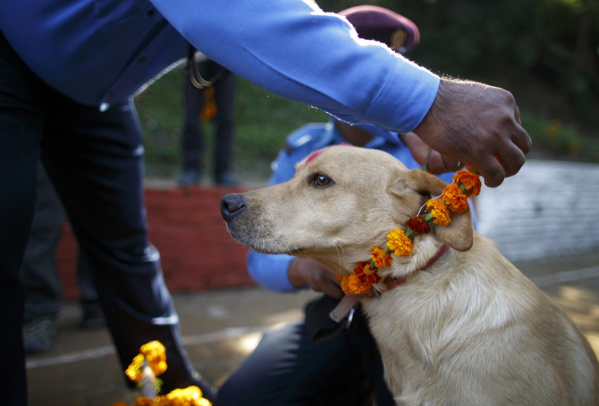 Während der Festivaltage DiwaliMit dem „Lichterfest“ findet in Nepal ein fünftägiges Festival statt Tihar und der zweite Tag des Festivals ist unseren treuen Begleitern, den Hunden, vorbehalten. Dieser Tag heißt Kukur Tihar oder Kukur Puja (Hundeverehrung). An diesem Tag hängen sich die Menschen Hunde um den Hals Blumensträuße, sie machen ein besonderes Zeichen auf ihrer Stirn, genannt Tick (Rotes Pulver auf der Stirn ist ein Zeichen der Heiligkeit), sie bereiten den Hunden köstliches Futter zu und feiern eine liebevolle Beziehung zwischen einem Hund und einem Menschen.