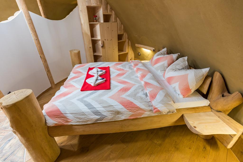Abseits der Hektik der Stadt, inmitten der wunderschönen Landschaft von Razkrižje, steht ein modernes slowenisches Hobbithaus, Erde Frau. Dieser ist fertig aufgebaut aus natürlichen Materialien (Lehm, Holz) und die Liebe zur Kreativität und zur Natur ist auf Schritt und Tritt zu spüren. Mit seinem begrünten Dach fügt sich das Lehmhaus perfekt in seine Umgebung ein, umgeben von einer Holzwand, die für Privatsphäre sorgt. Das Haus ist über einen Weg oder eine Holztreppe erreichbar.