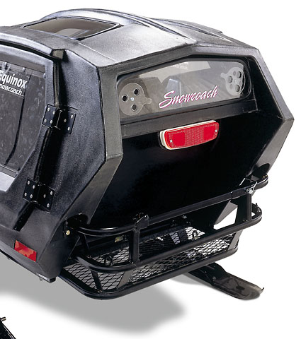 Equinox Snowcoach ist Schneemobil-Anhänger, die in der Länge misst 183 Zentimeter, etwas weniger, 132 und 114 Zentimeter in Höhe bzw. Breite. In seinem komfortablen und geräumigen Innenraum ist Platz Für zwei Leute und Geräteaufbewahrung. Sie sorgen für eine angenehme Fahrt Gas-Stoßdämpfer, sowie für Sicherheitsvorder- und Rücklichter, Stoßstangen u Sicherheitsgurt auf den Sitzen.