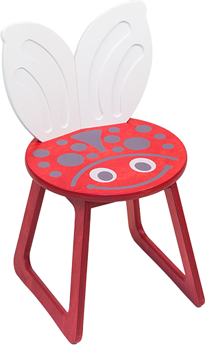 Sammlung Frrrniture beinhaltet Stühle und Tische. Die Stühle unterscheiden sich charakterlich: Hase, Frosch, Marienkäfer, Biene, Pinguin und Fliege. Die Figuren haben leuchtende Farben und einfache Formen, was dem Kind Raum für seine eigene Wahrnehmung der Figuren lässt. Sie sind geeignet für Kinderzimmer und für öffentliche Einrichtungen, Kindergärten, Schulen. Sie füllen auch Spielecken gut aus, kurz gesagt, sie sind überall dort nützlich, wo es Oberflächen gibt, die für das Spielen und die Entwicklung von Kindern bestimmt sind. In der Vorschulerziehung regen sie die kindliche Fantasie an, denn durch ein spielerisches Bild werden sie Teil des Geschehens. Später helfen sie den Eltern beim Füttern und Arbeiten am Tisch, was besonders in der Entwicklungsphase des Kindes vom Kindergarten zur Grundschule wichtig ist.