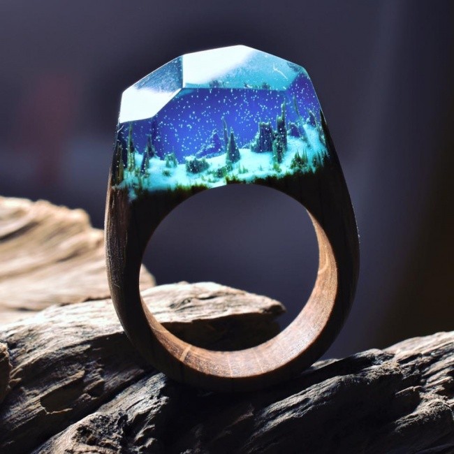 Wenn Sie sich selbst oder Ihren Lieben ein ganz besonderes Schmuckstück schenken möchten, sind Ringe eines kanadischen Unternehmens Geheimes Holz definitiv die richtige Wahl. Durch eine spezielle Überlagerungstechnik auf dem Ring entstehen ganze Wälder, Eislandschaften, Unterwasserwelten, Blumen, Wiesen und andere wunderschöne Naturszenen. Das Ergebnis ist so unglaublich, dass man nicht aufhören kann, die Ringe anzustarren.