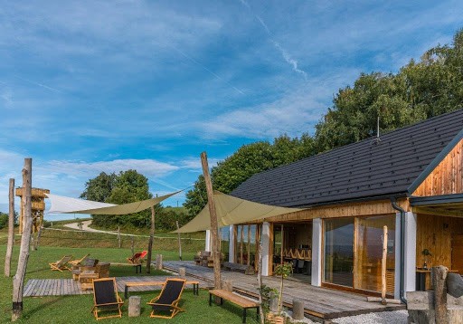 Ansichten von oben sie vereinen den Mehrzweckraum Plahutnik Stan, idyllische Holzhäuser und einen Aussichtsturm. Holzhäuser eignen sich auch für einen mehrtägigen Urlaub. Sie sind einfach, mit einer kleinen Terrasse und einer großen Glaswand, durch die sich der Blick über die umliegenden Hügel erstreckt. Ein großes Doppelbett bietet den Komfort von Top-Hotels, hölzerne Wanne und eine romantische Atmosphäre. Auch Kinder werden die Natur genießen, da es einen Platz für sie gibt Volleyball, Fußballplatz und schwingt. Dazu passt auch der schöne Ausblick auf die nahe Landschaft perfekt Aussichtsturm, der sich 7 Meter in die Höhe erhebt und einen Blick auf Domžale, Ljubljana, den Flughafen und die Kamnik-Savinjske-Alpen bietet. Plahutniks Wohnung ist ein wunderbarer Ort, an dem Hochzeiten, Partys und Jubiläen zu einem noch magischeren Ereignis werden. Ein wunderschönes Holzgebäude mit viel natürlichem Licht beeindruckt selbst die anspruchsvollsten Gäste. Eine minimalistische Einrichtung und die Verwendung natürlicher Materialien vermitteln ein besonderes Gefühl von Wohnlichkeit und Schlichtheit, während die große Terrasse einen wunderbaren Blick auf die umliegenden Hügel, Wälder und Wiesen bietet und gleichzeitig Partys im Freien ermöglicht.