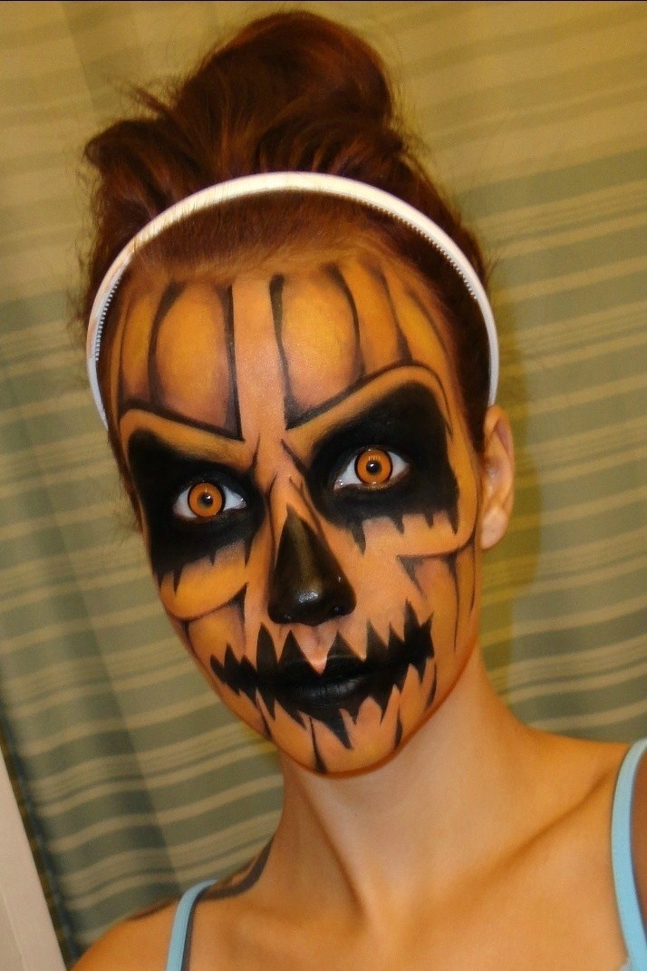 Und das Beste - mit einer der Masken unten (oder im Video oben), unter denen sie sich befinden gruselige Braut, Halbschädel, geschälte Haut, gruseliger Kürbis und Vampirhexe, Sie sparen Geld für ein Kostüm, da Sie einige davon mit Make-up erstellen können, das Sie bereits in Ihrer Schminktasche haben.