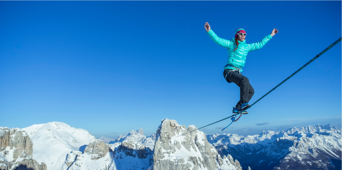Apnenčasta stolpa Vajolet Towerst v italijanskih Dolomitih veljata za pravi plezalni raj. Vrhohodka Hayles Ashburn pa na stolp ni le splezala, ampak je storila še korak več oziroma kar precej več, če smo natančni. Med vrhoma je namreč napela vrv in izvedla highline, ki je isto kot Slackline, deshalb hoja po traku, le da na ekstremni višini.