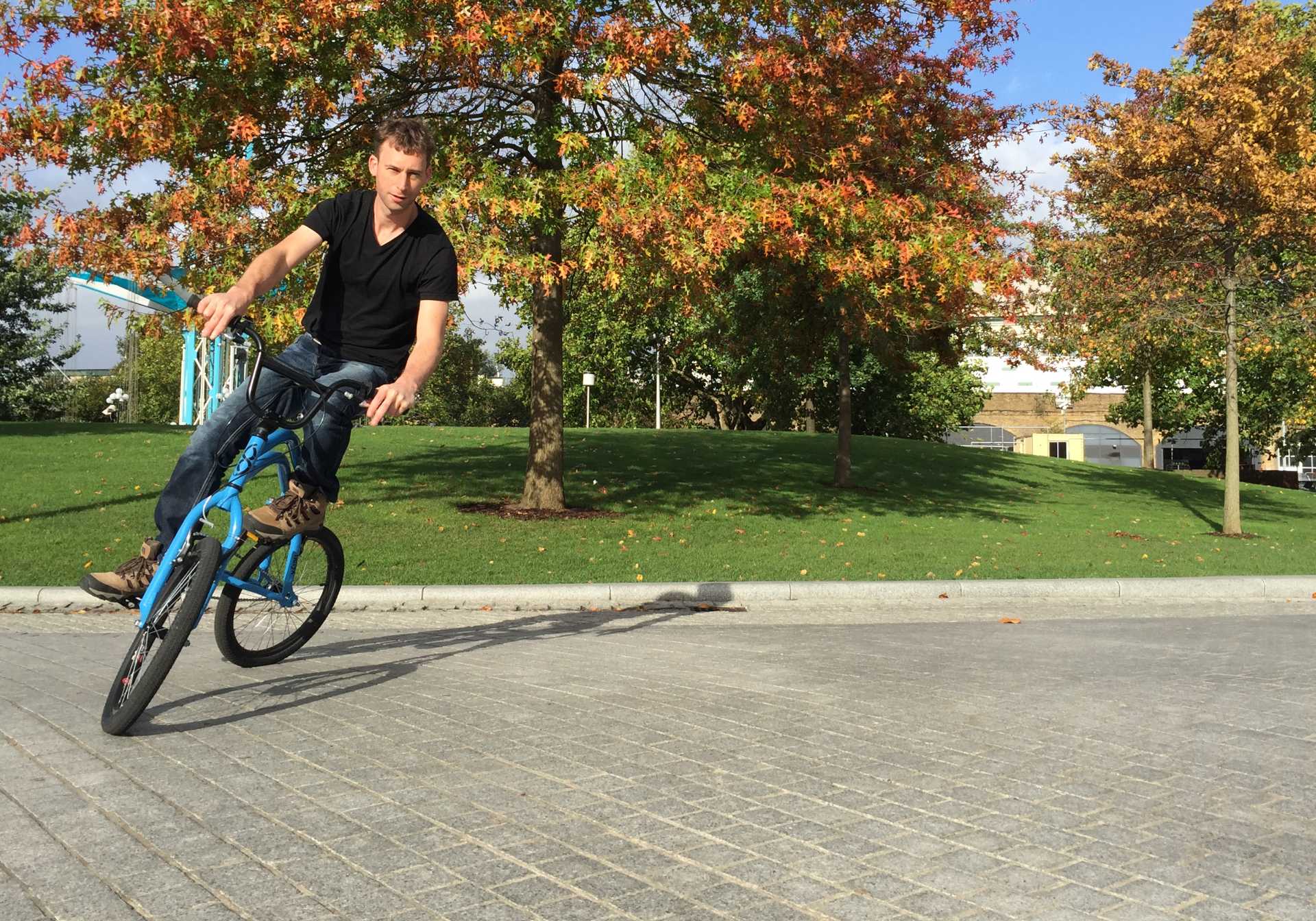 Der Londoner Ingenieur James Roberts erfand ein spezielles Helyx-Fahrrad, das dem Benutzer mehr Kontrolle über die Lenkung gibt. Das spezielle Design ermöglicht es dem Benutzer, das Hinterrad und den Sitz zu „lösen“, was dann zum weiteren Lenken des Fahrrads verwendet werden kann.