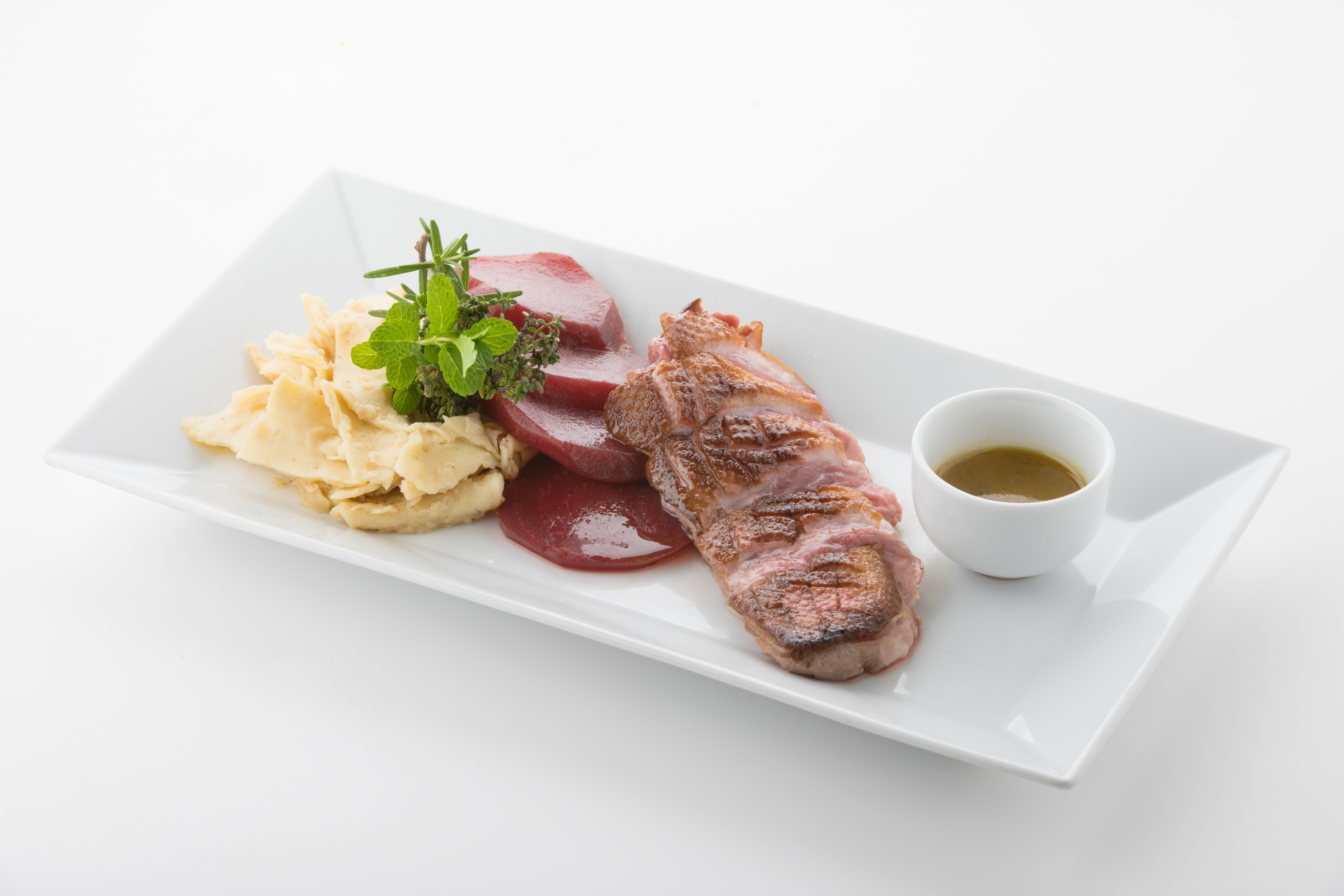 Zu den exotischsten Gerichten auf der Speisekarte gehören Topinambursuppe, Eiscreme, Lauchpüree, Hirschrücken, Kürbissuppe mit Zitrusfrüchten und Krebsen, Kastanienmousse mit Kakicreme, Kaiserstatuette mit Walnüssen und Wein-Shodo, langsam gebratene Entenbrust mit Orangensauce und Granatapfel-Apfel-Estragon-Kompott.