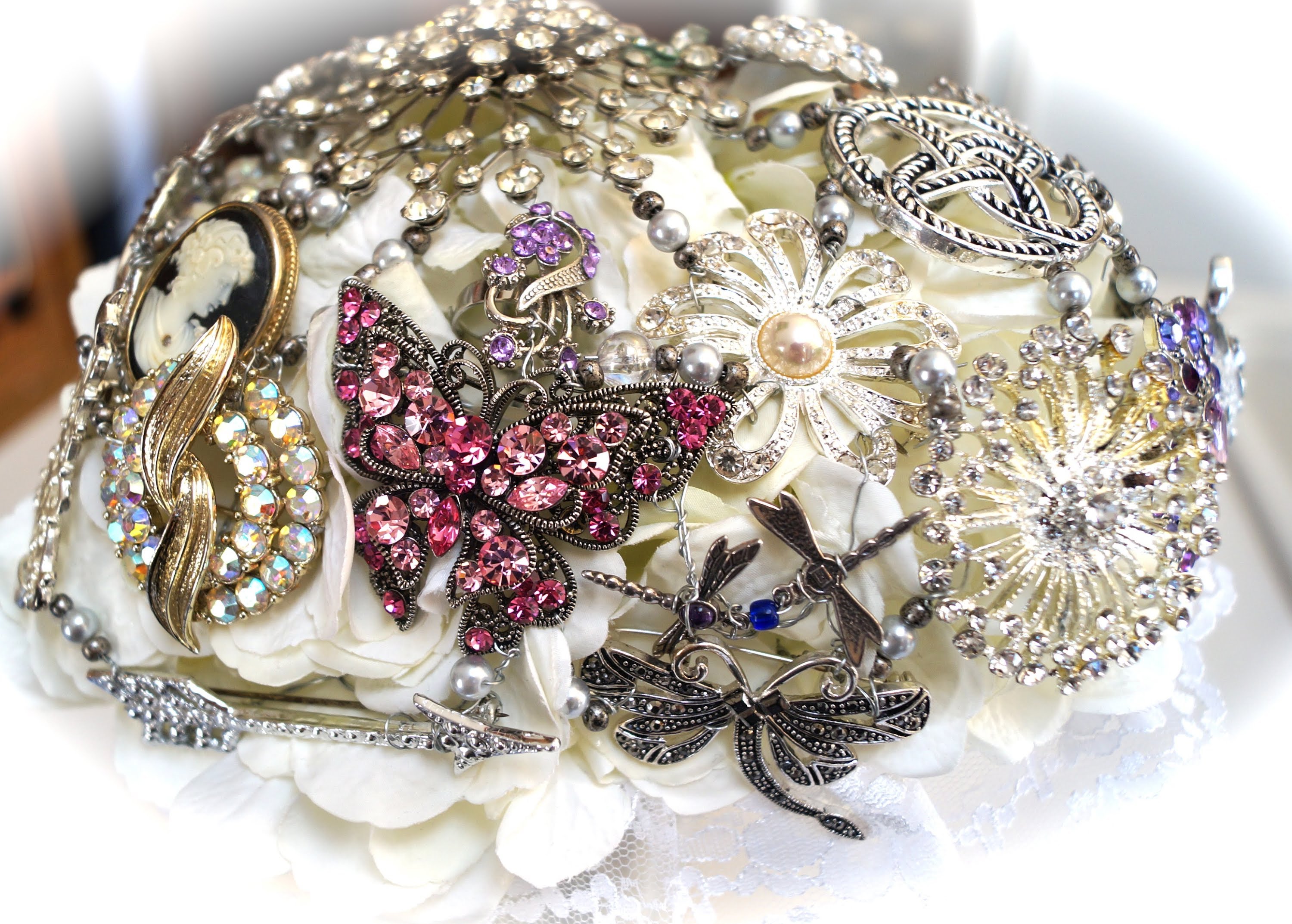 Vergessen Sie den Blumenstrauß der Hochzeit. Hochzeitssträuße aus Broschen sind jetzt im Trend. Neben dem Brautkleid gehört der Brautstrauß zu den zentralen Elementen des Hochzeitslooks, der die Schönheit der Braut betont. Wie Blumen kann auch Schmuck Ausdruck ihrer Weiblichkeit sein.