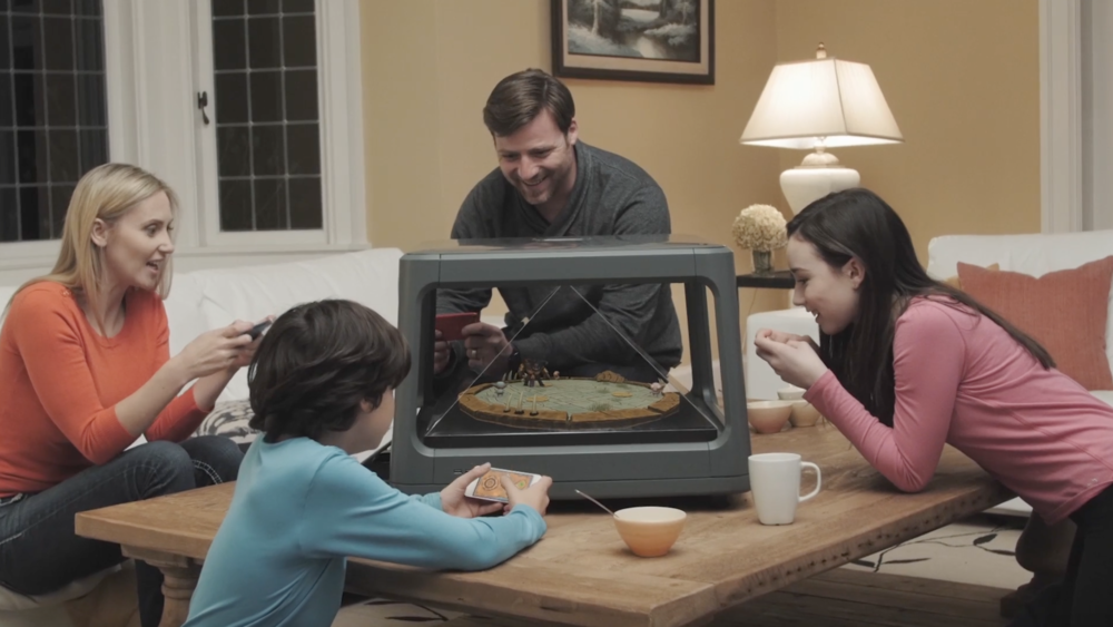 Holus es ist Interaktives holografisches Desktop-Display, das digitale Inhalte von einem Computer, Tablet und Smartphone in umwandelt 3D-Hologramme. Einfach ausgedrückt, ob es sich um Spiele, DNA-Strukturen, eine Telefonkonferenz oder das Sonnensystem handelt, Ihre Inhalte werden lebendig und sichtbar aus vier verschiedenen Blickwinkeln (360-Grad-Sichtfeld). Sie können es auch auf nie zuvor verfügbare Weise verwenden, integriert Bewegungssensor und Lautsprecher sondern dank der Tatsache, dass die Inhalte nach dem Prinzip der Wii-Konsole verwaltet werden können.