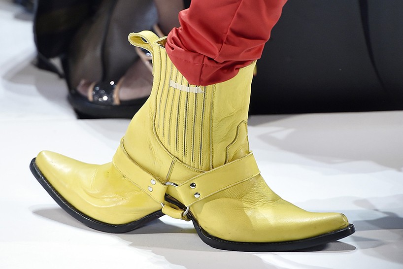Bei der Hood By Air-Modenschau auf der New York Fashion Week gab es viel zu sehen. Models liefen in ungewöhnlichen Cowboystiefeln über den Laufsteg. Sie sind doppelseitig, da sie kein hinteres Teil haben, sondern „nur“ zwei vordere. Wir dachten schon, dass Cowboystiefel, die in Sandalen umgewandelt werden, eine bizarre Idee sind.