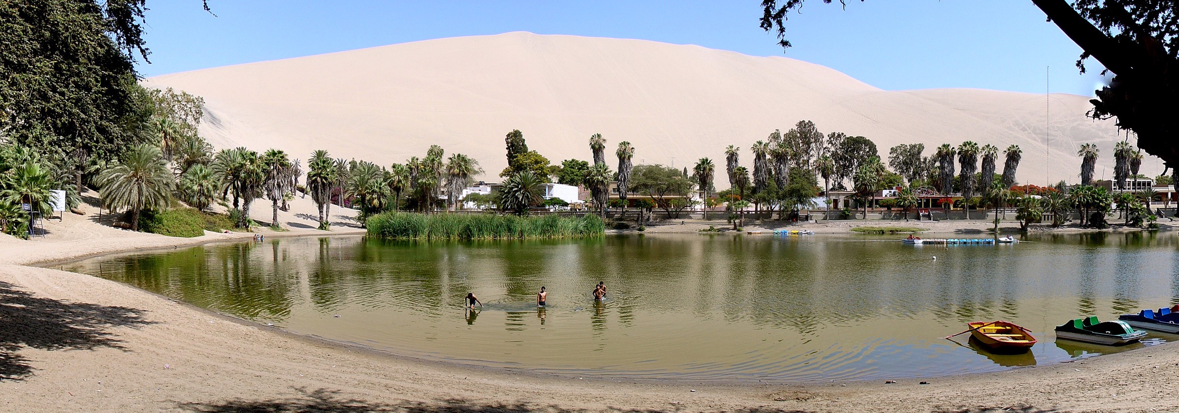 Huacachina vielleicht nicht so berühmt wie Nazca im Süden, aber es ist genauso schön. Dieses eine Wüstenoase liegt nur gut 4 Kilometer von der Stadt entfernt Eis an südlich von Peru. Es blühte zwischen den 1940er und 1950er Jahren auf, als die peruanische Elite begann, es als Ausflugsziel zu nutzen. Der Legende nach entstand die Oase, als ein junger Jäger dort beim Baden eine wunderschöne Prinzessin erwischte. Sie rannte vor ihm davon und hinterließ ein Wasserbecken, das später eine Lagune bildete. Um an das unterirdische Wasser zu gelangen, bauten die Einheimischen einige Brunnen, wodurch der Wasserspiegel in der Lagune erheblich sank. Um dich nicht komplett auszutrocknen, fügen sie jetzt selbst Wasser hinzu.