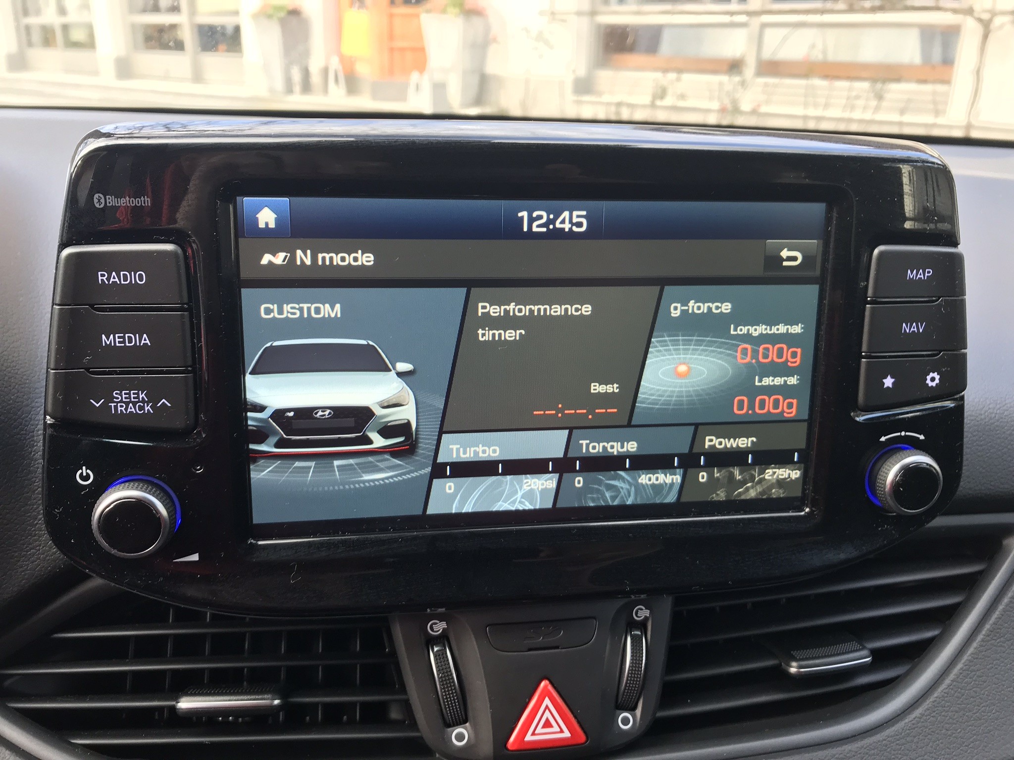 Der i30 N hat speziell angepasste Instrumententafel, auf dem wir Daten wie Öltemperatur, Turboladerbereitschaft, Motortemperatur und andere wichtige "Rennsport" -Daten überwachen können. Wir haben verfügbar 8-Zoll-Touchscreen, über die wir Einstellungen, Navigation, Musik und mehr verwalten. Sportsitze Wir können uns eine Kombination aus Leder und Stoff oder komplett aus Stoff vorstellen. Sie haben einen guten Seitenhalt, und auch hier darf das N-Logo nicht fehlen.Das Lenkrad wurde ebenfalls speziell für den i30 N entworfen und hat auffällige Tasten zur Auswahl des Fahrprofils oder die Auswahl des Sport- oder Fahrmodus N. Weitere Technologien umfassen Aufladen des drahtlosen Telefons und Android Auto-Unterstützung und Apple CarPlay.
