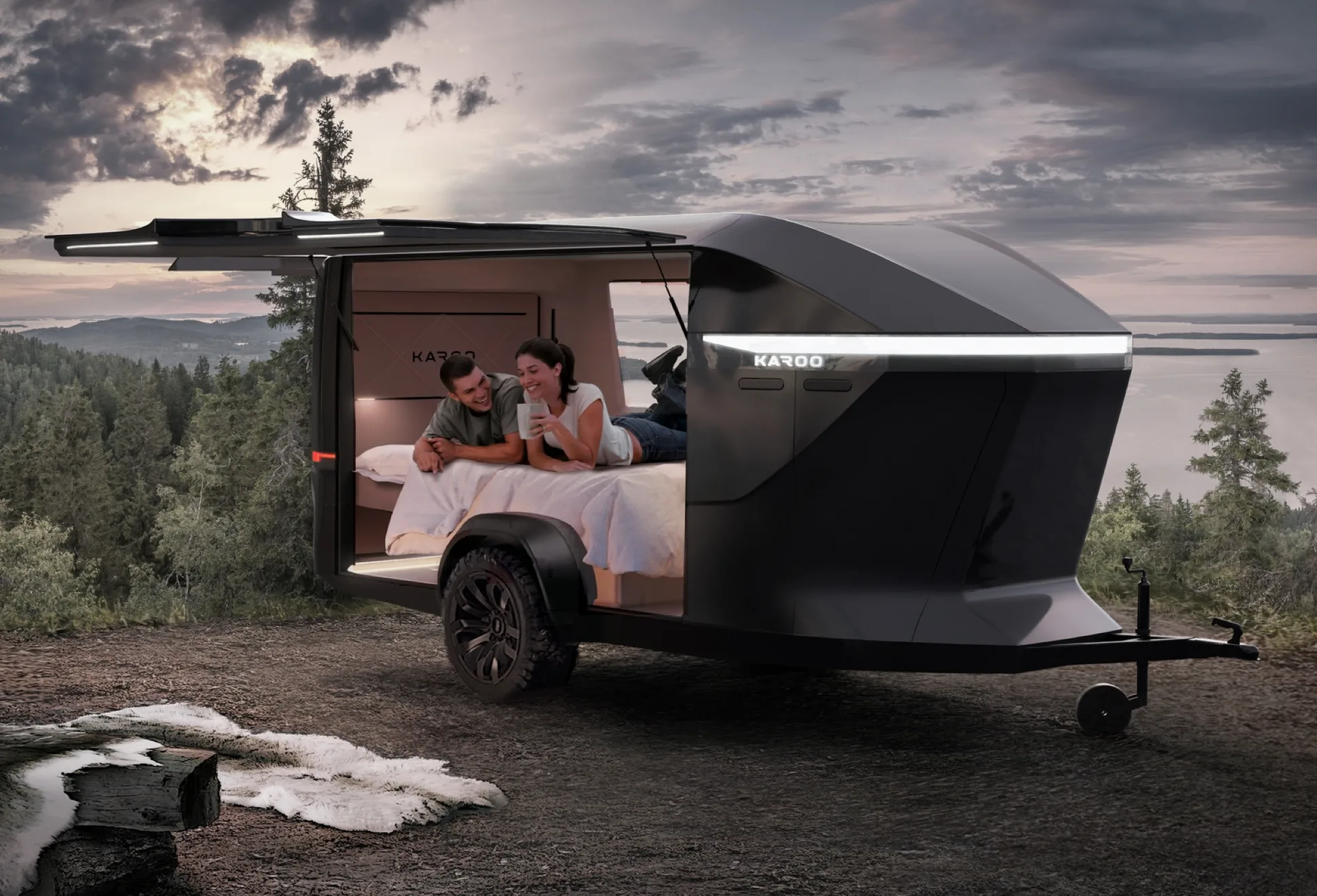 Der Karoo Adventure ist eine ausgezeichnete Wahl für alle, die einen flexiblen, komfortablen und modernen Wohnwagen suchen. Dieses finnische Wunder vereint Leichtigkeit, Aerodynamik und unglaubliche Anpassungsfähigkeit und ist somit perfekt für alle Arten von Abenteuern. Mit einem Gewicht von weniger als 750 kg kann dieser Anhänger von einem normalen SUV oder sogar einem Elektrofahrzeug (wallpaper.com) (Karoo Camper) gezogen werden.